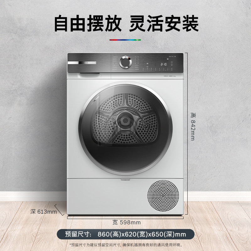 【以旧换新】博世4系除菌除螨10公斤家用官方热泵烘干机滚筒式DA0
