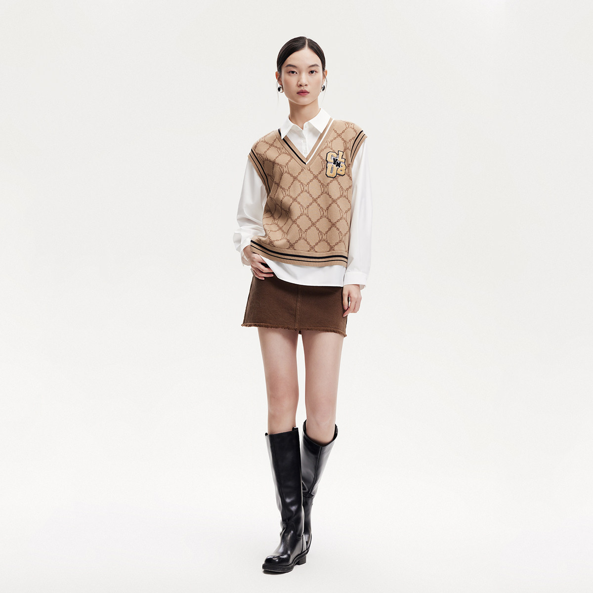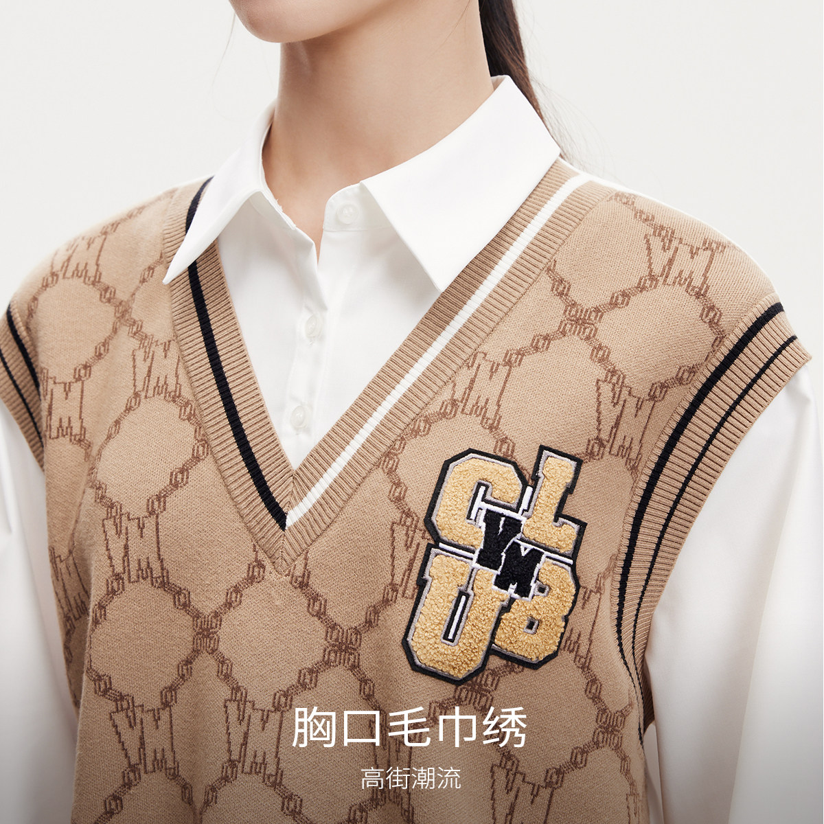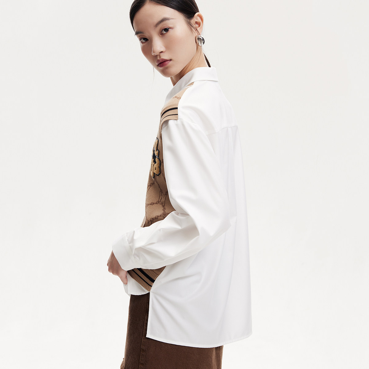 Vero Moda衬衫秋冬拼接老花印花字母贴布绣粘花通勤上衣324351004