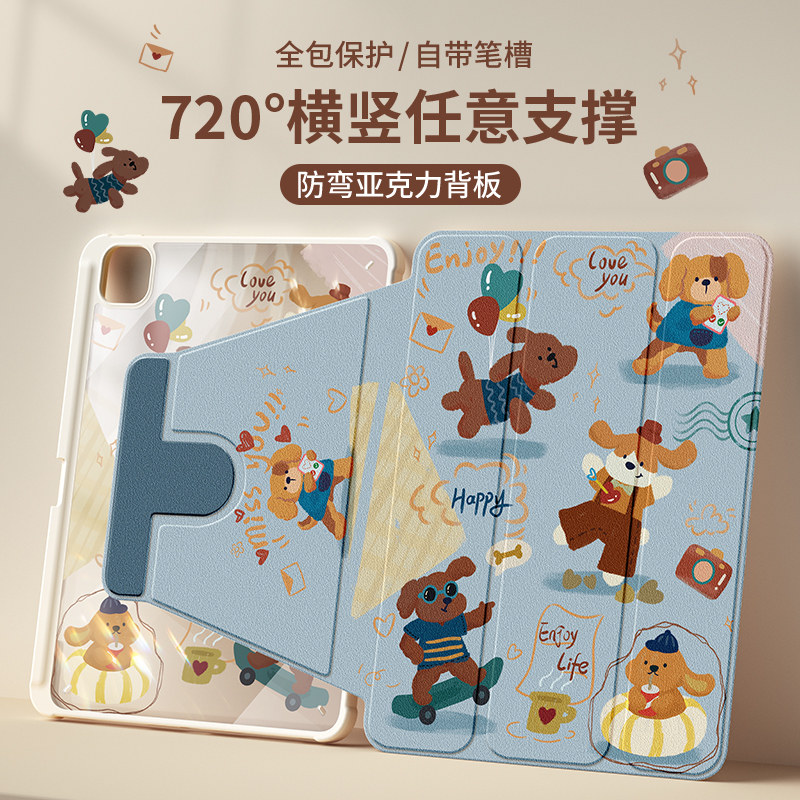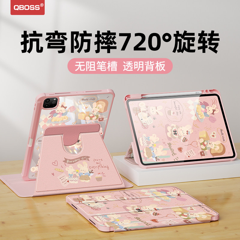 适用苹果平板ipad保护套air5/4保护壳2022新款第10/9代亚克力3带笔槽2021ipadpro11全包mini6九防弯十代兔子