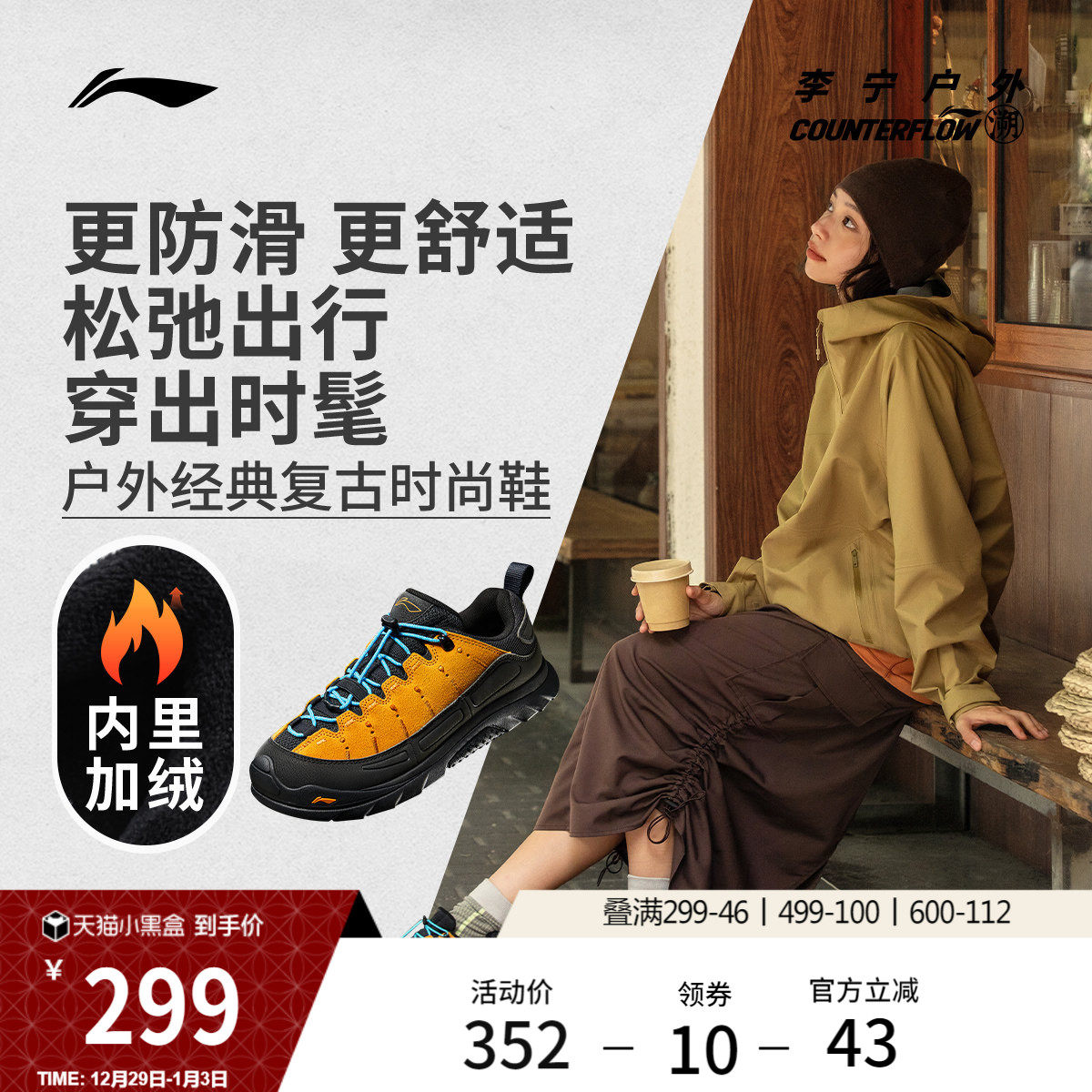 肖战同款李宁户外CF溯丨林韵SE休闲鞋男女冬季加绒缓震潮流运动鞋