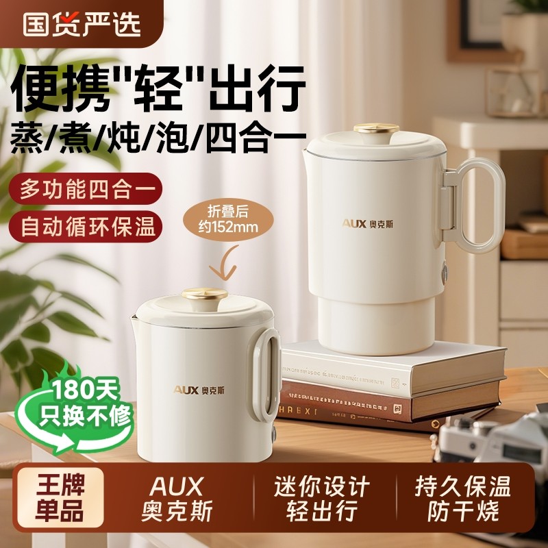 奥克斯全钢折叠水壶旅行出差便携式烧水壶不锈钢电热水杯迷你家用