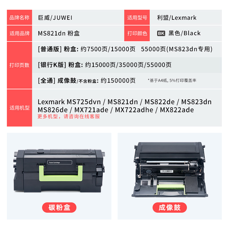 适用利盟MS821dn粉盒MS725dvn MS823dn墨盒MS822de MX721ade碳粉MX722adhe墨粉盒MX822ade碳粉盒MS826de硒鼓