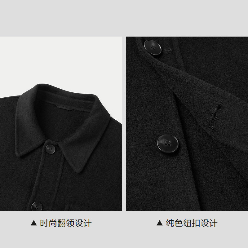 HLA/海澜之家短款含羊毛大衣秋冬舒适保暖时尚翻领双面呢厚外套男