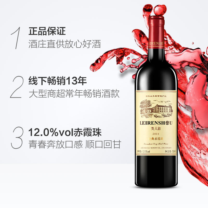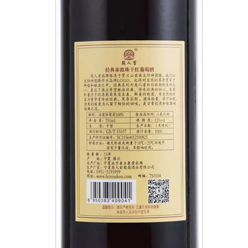 宁夏贺兰山东麓红酒类人首赤霞珠干红葡萄酒6瓶750ml佐餐酒酒庄