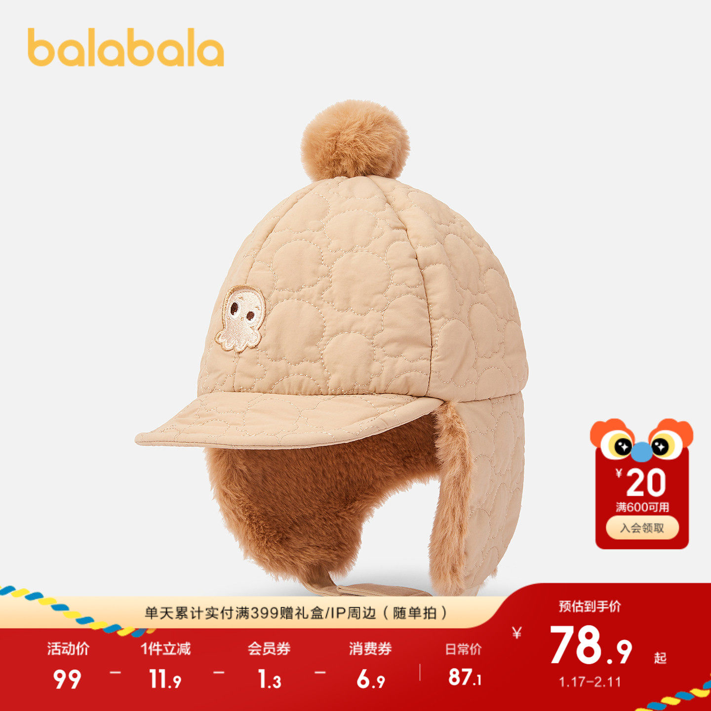 【商场同款】巴拉巴拉婴童帽子宝宝护耳帽保暖小章鱼刺绣时尚清新