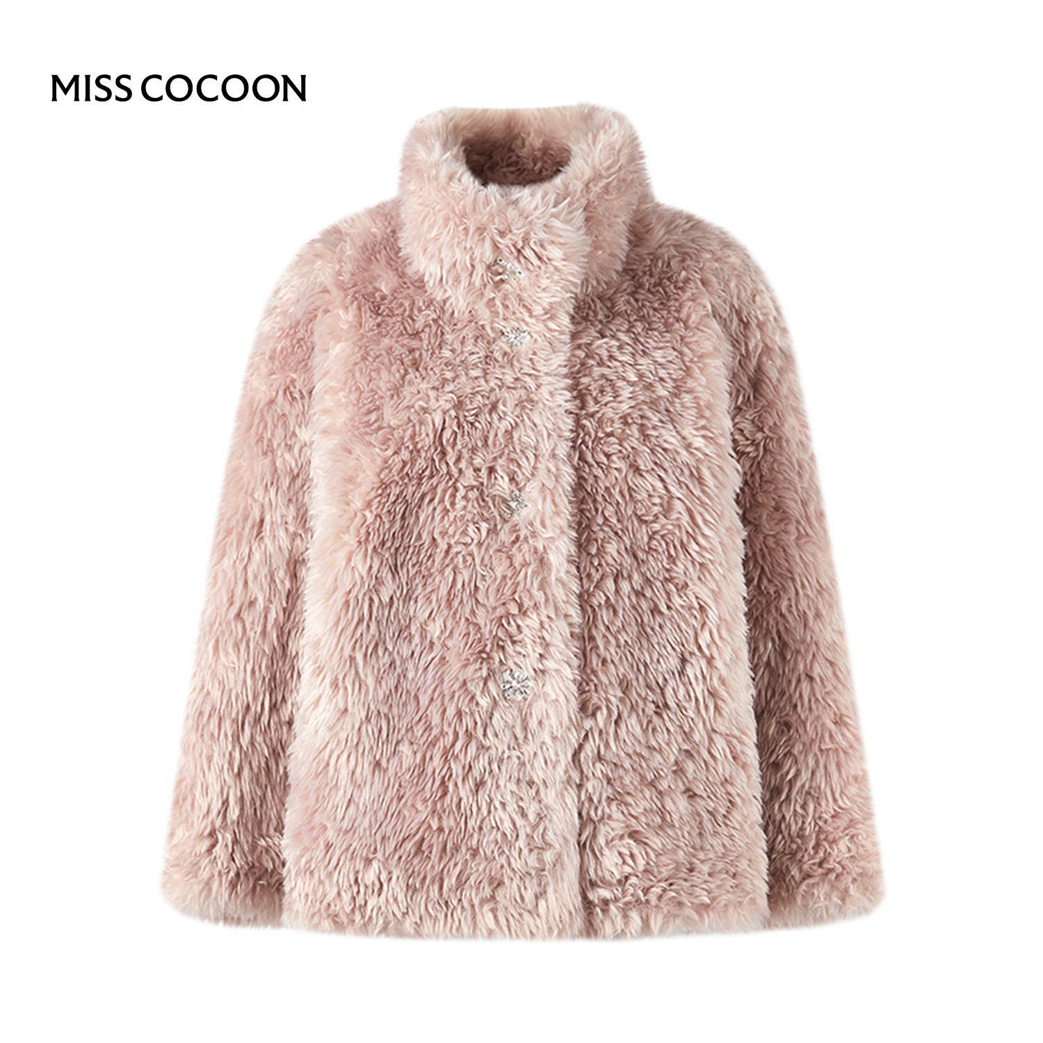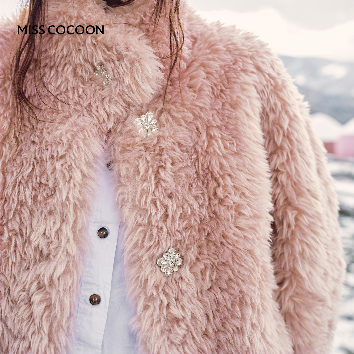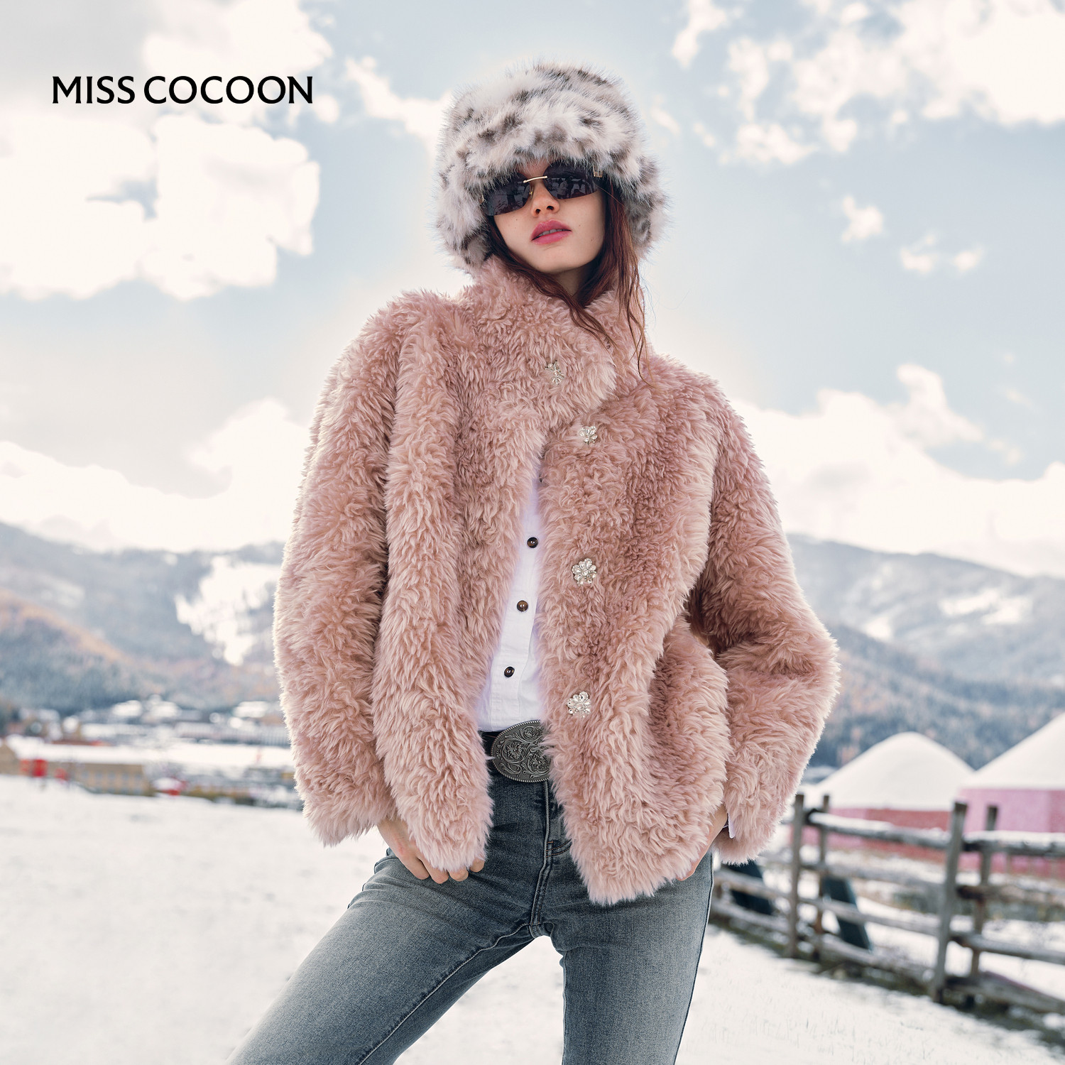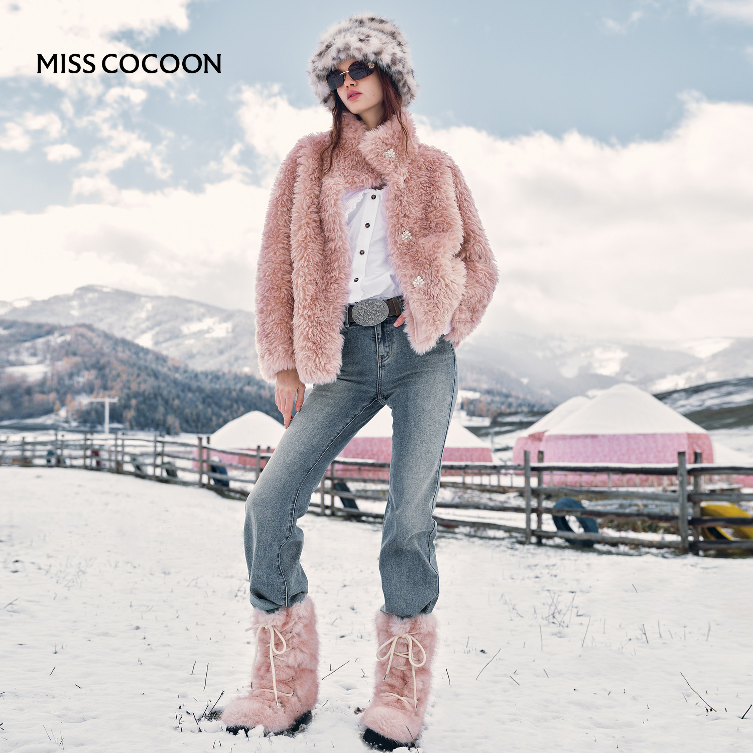 MISSCOCOON可可尼短款外套女2025冬季新款温柔风翻领粉色环保皮草