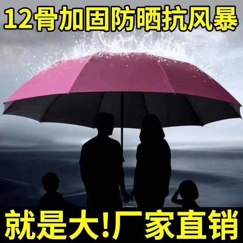 12骨超大号折叠防暴雨伞加大加固三人晴雨两用防晒遮阳伞多颜色