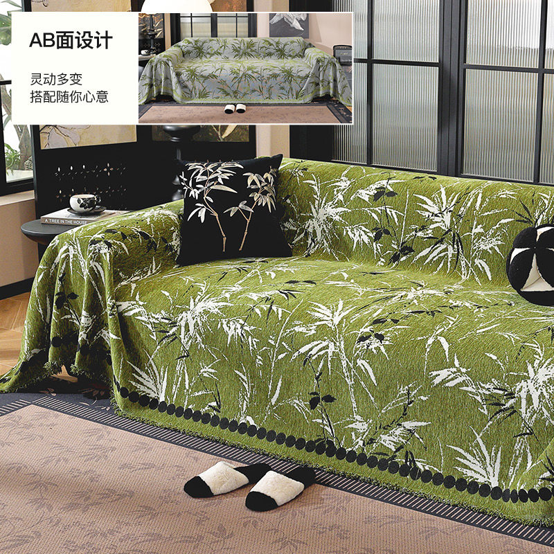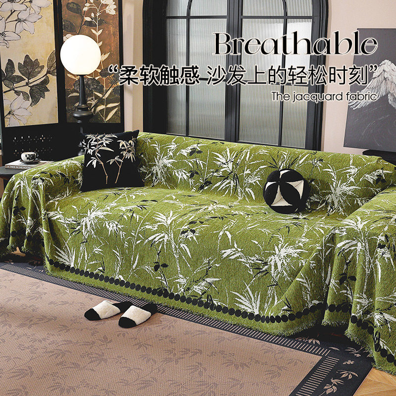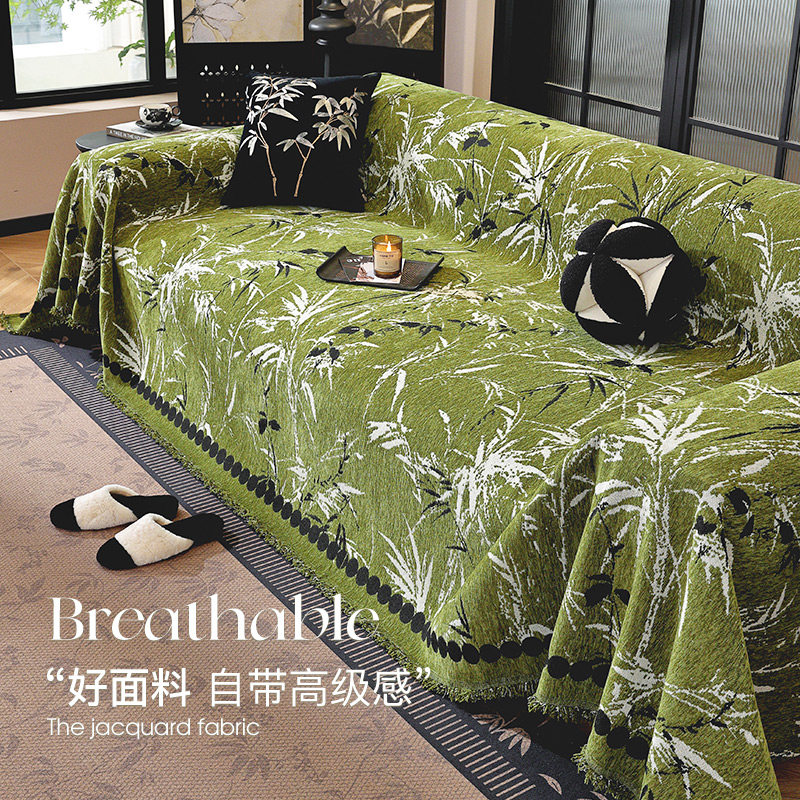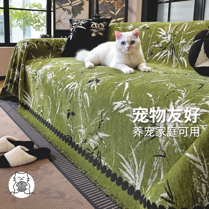 2025年新款沙发巾全盖防滑沙发垫雪尼尔复古沙发盖布高级感绿色