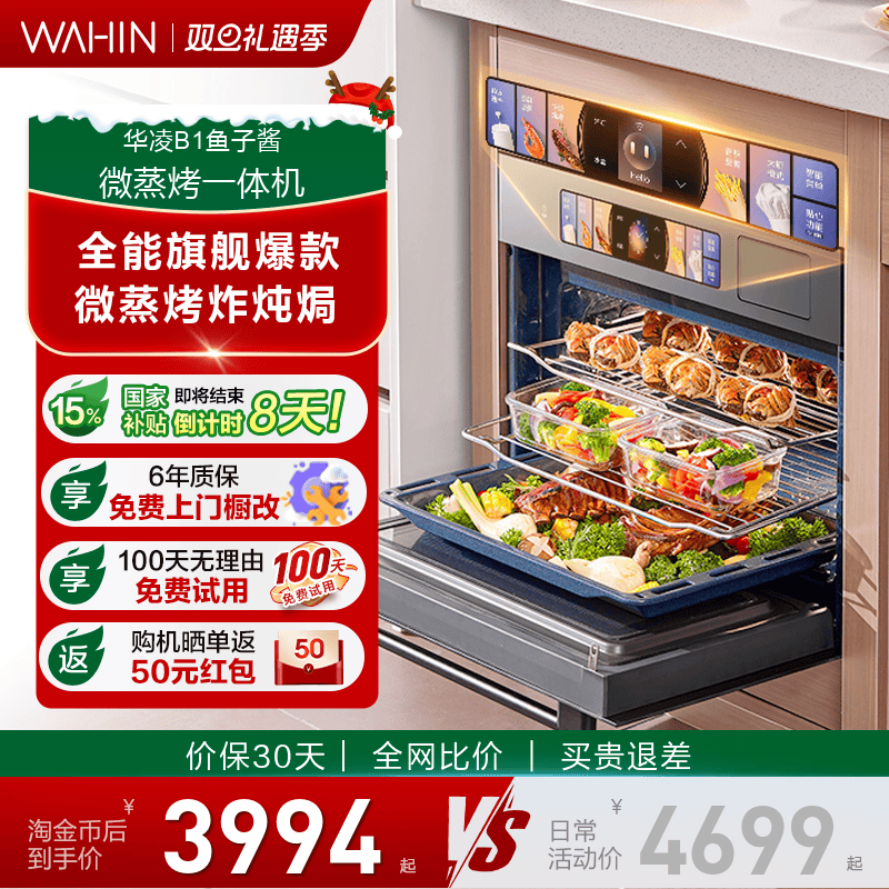 美的华凌B1鱼子酱微蒸烤炸炖一体机嵌入式微波炉电蒸烤箱家用智能