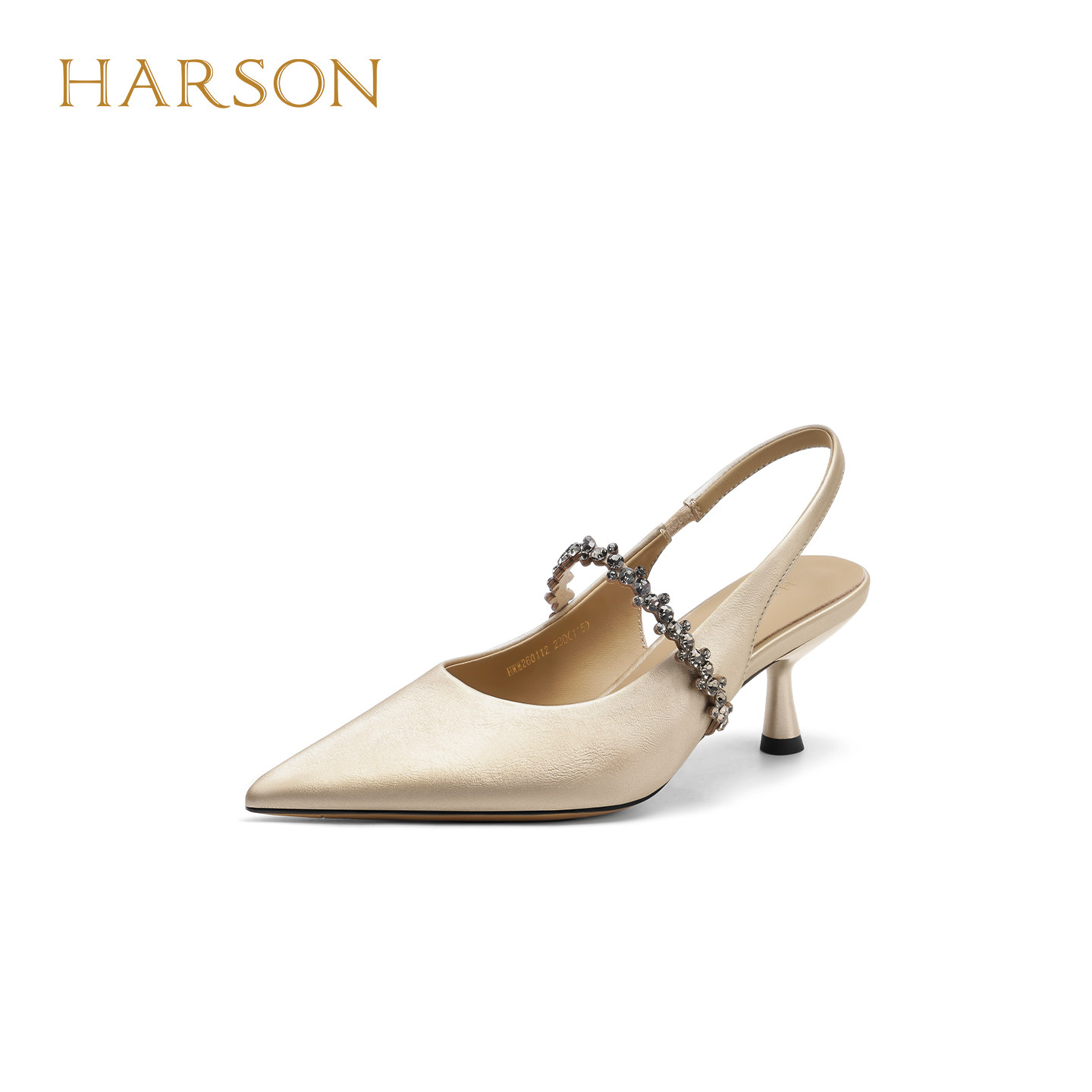 哈森2026夏季新款复古尖头细跟高跟鞋搭扣气质后空凉鞋HWM260112