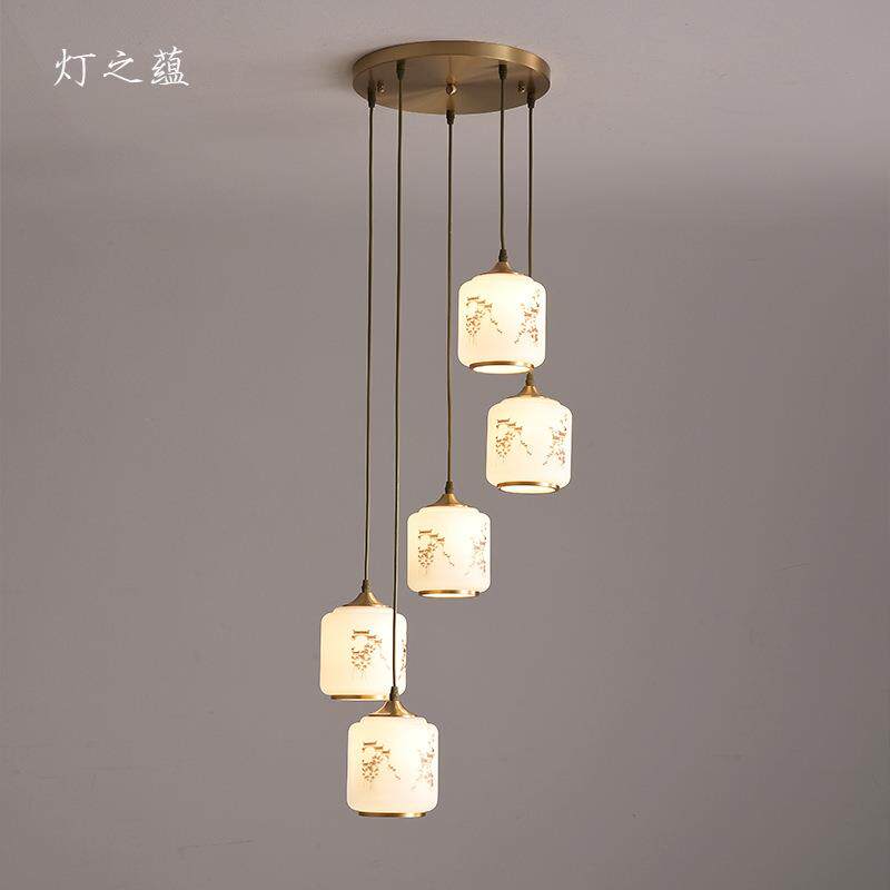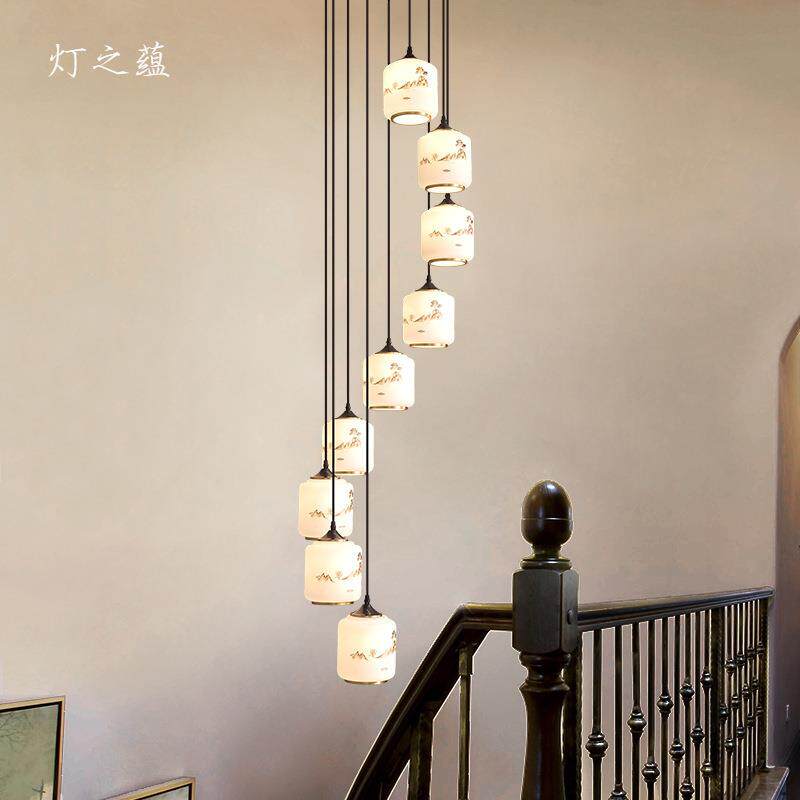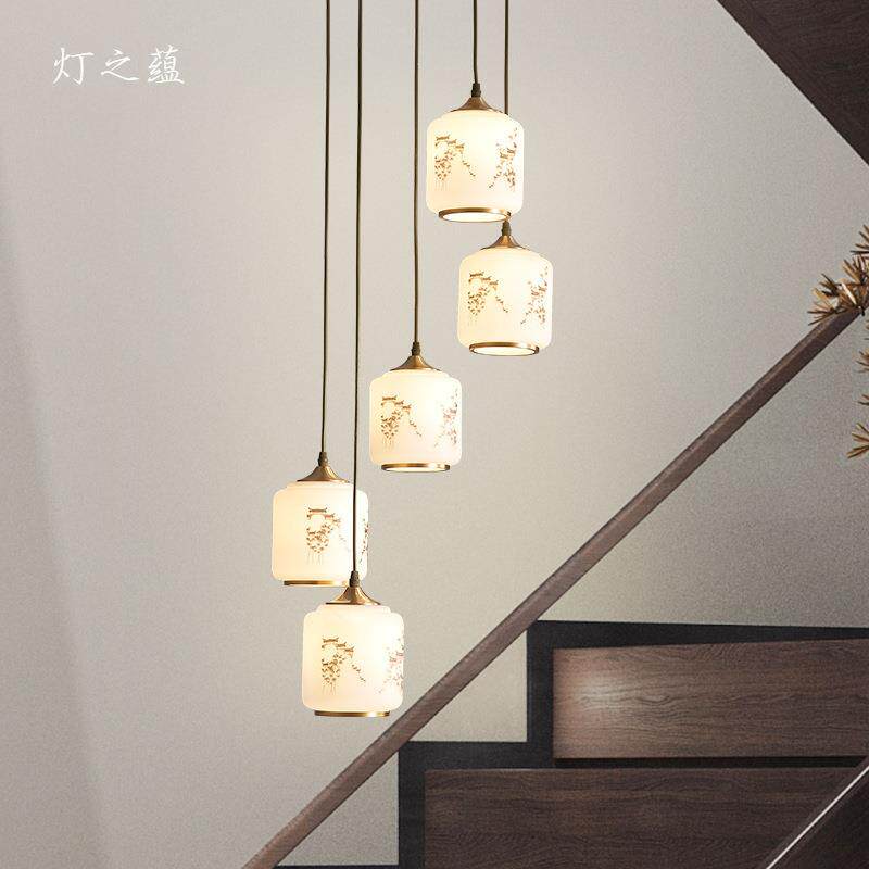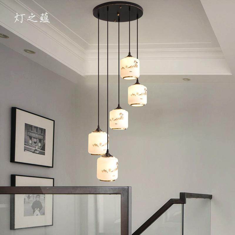 创意旋转楼梯吊灯全铜复式楼挑空别墅新中式2024年新款loft长吊灯