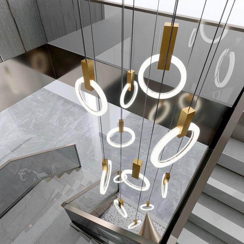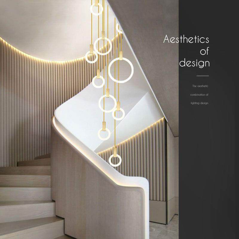 复式楼客厅长吊灯创意个性旋转楼梯灯别墅大吊灯现代简约过道灯具