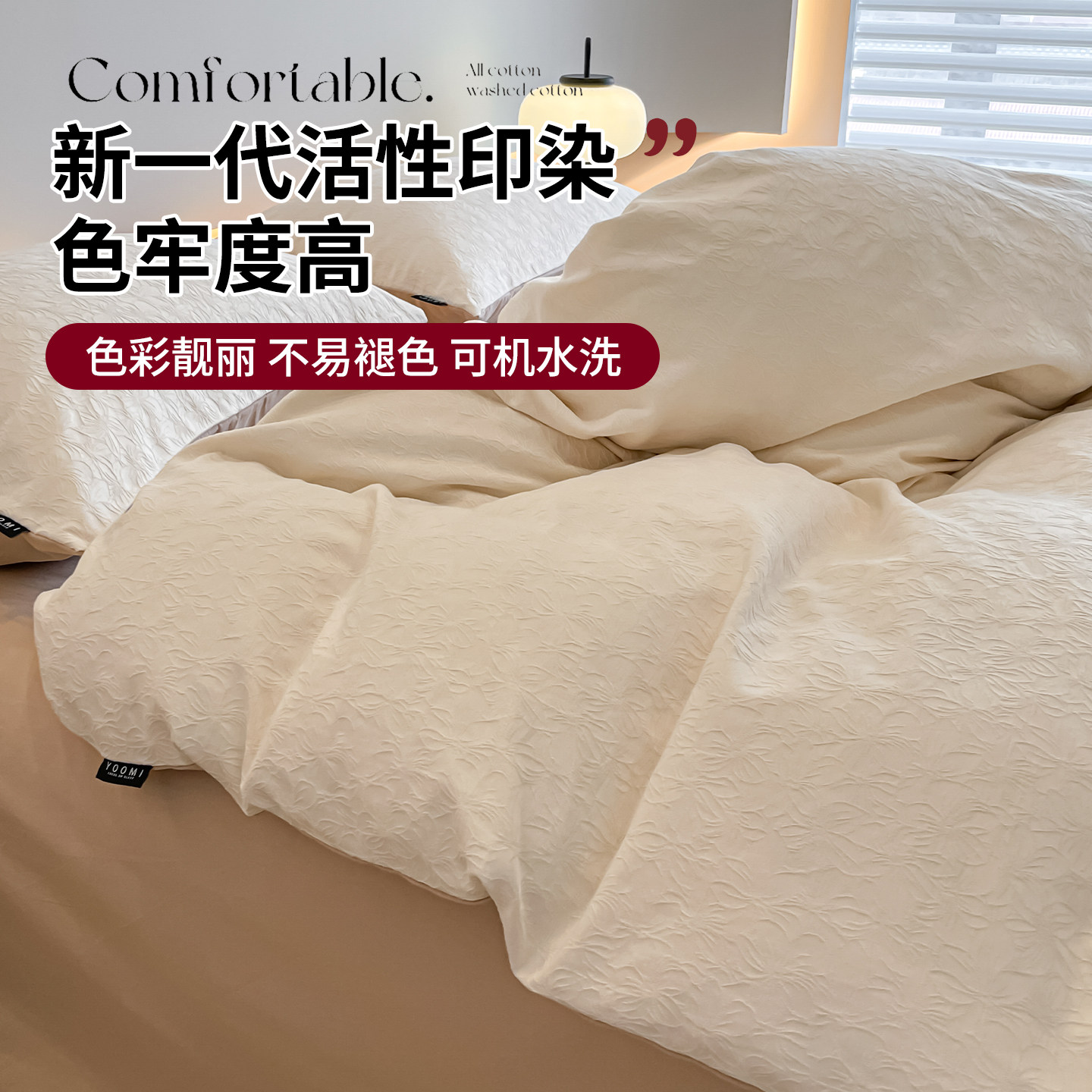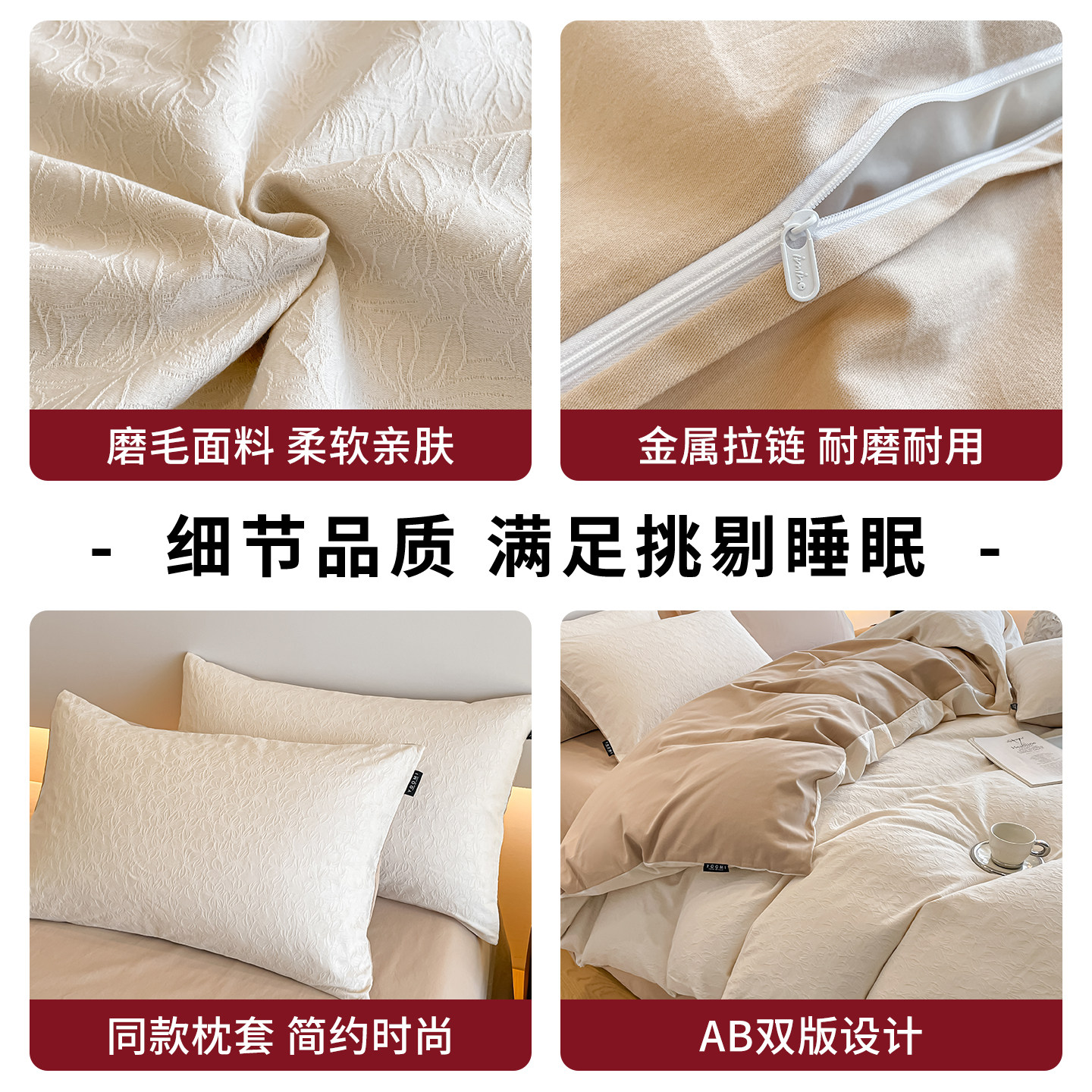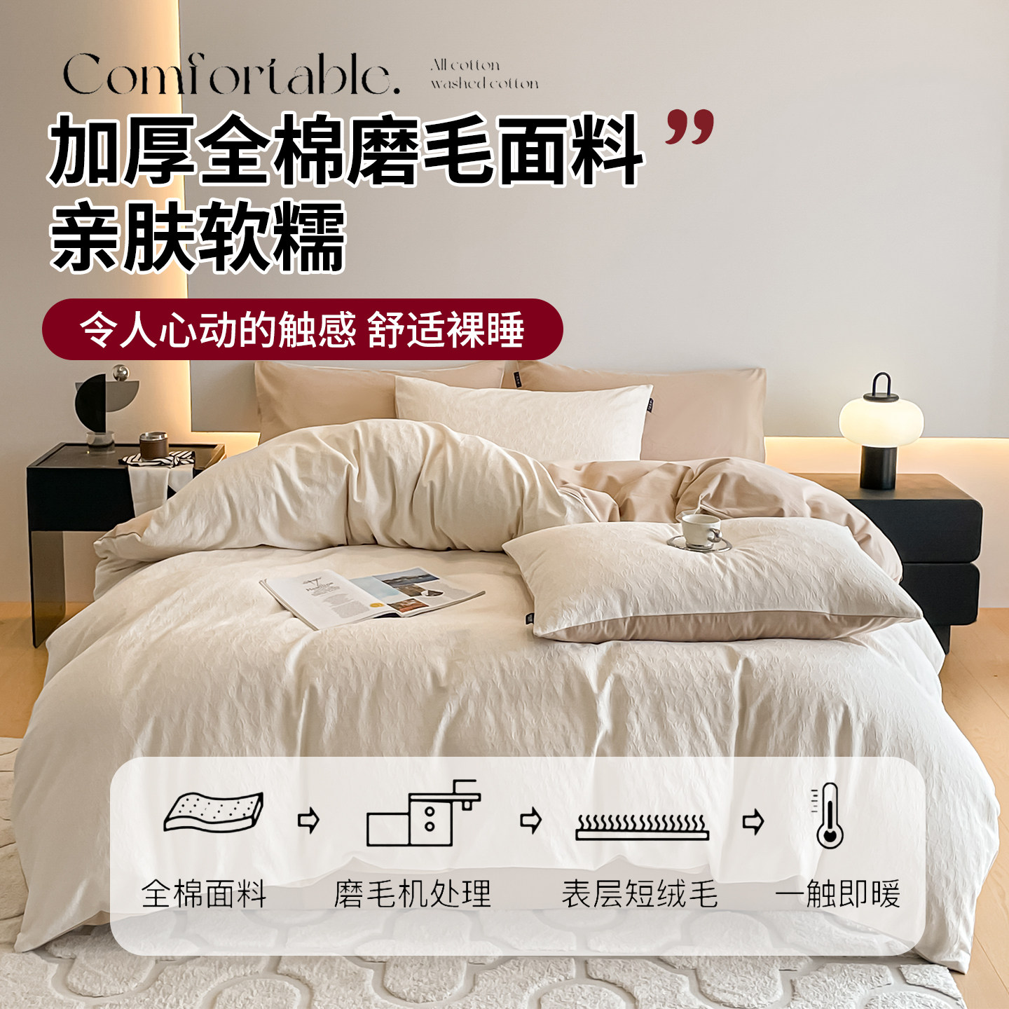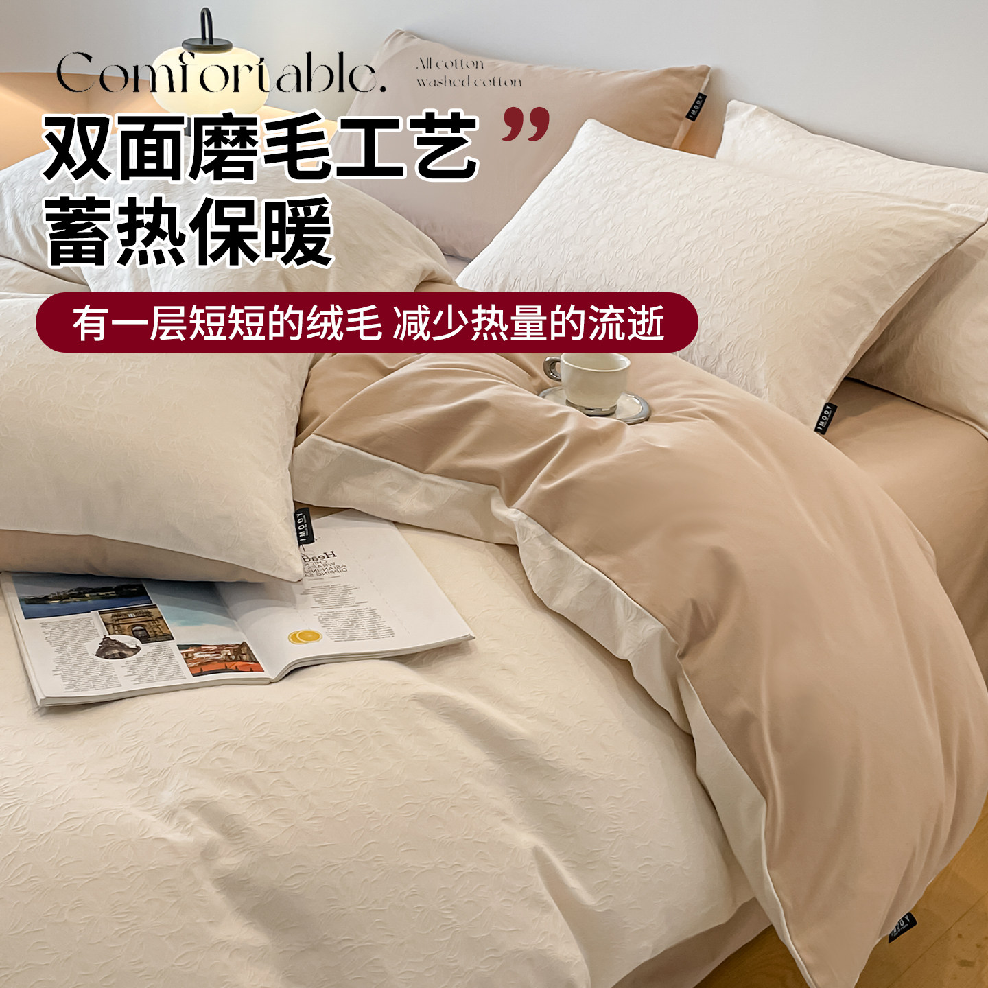 无印良品全棉磨毛四件套纯棉床单被套高级感色织提花冬季床上用品