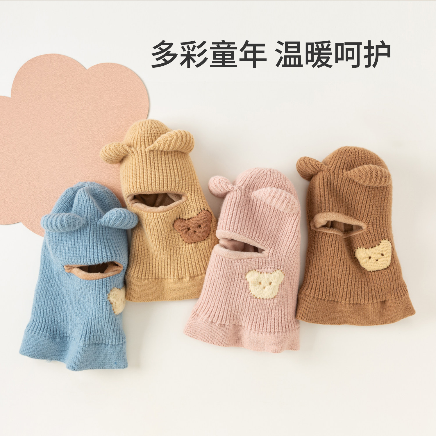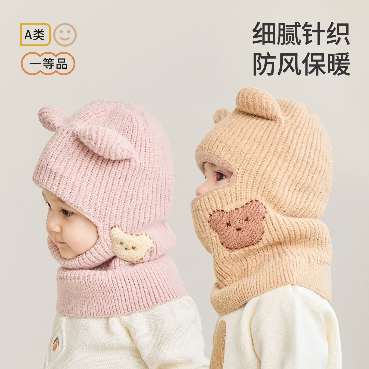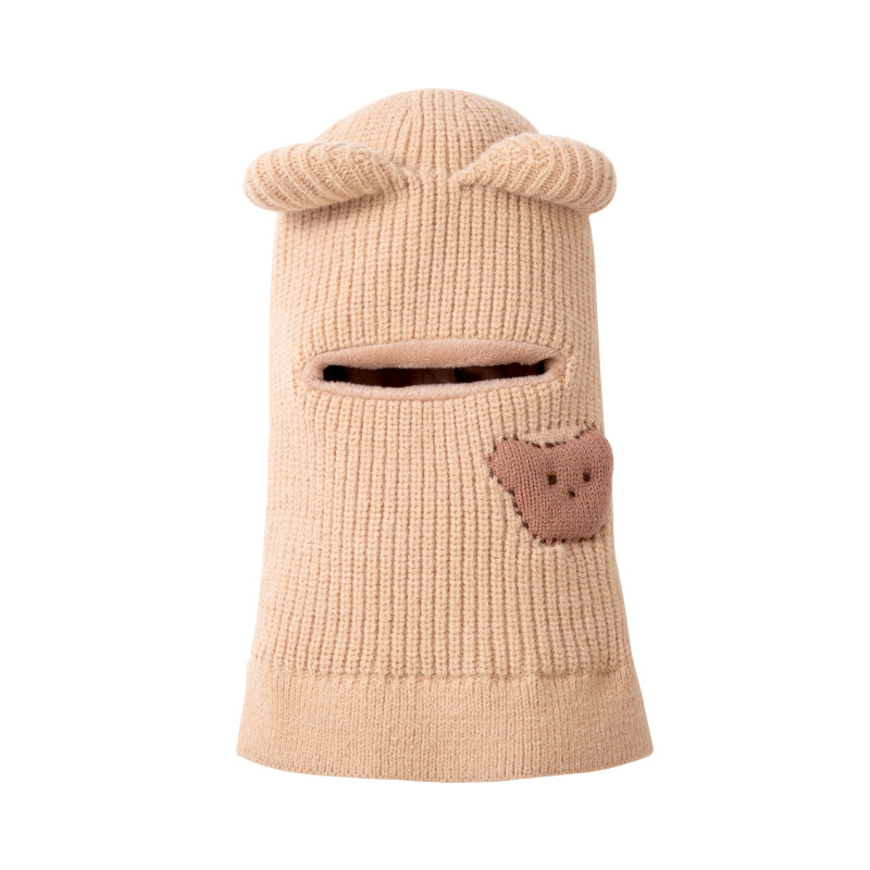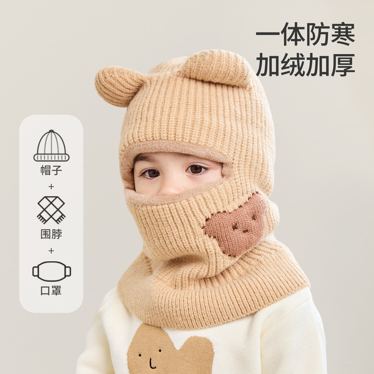 hugz儿童帽子围巾秋冬户外男孩女孩保暖针织毛线帽护耳防风熊仔帽