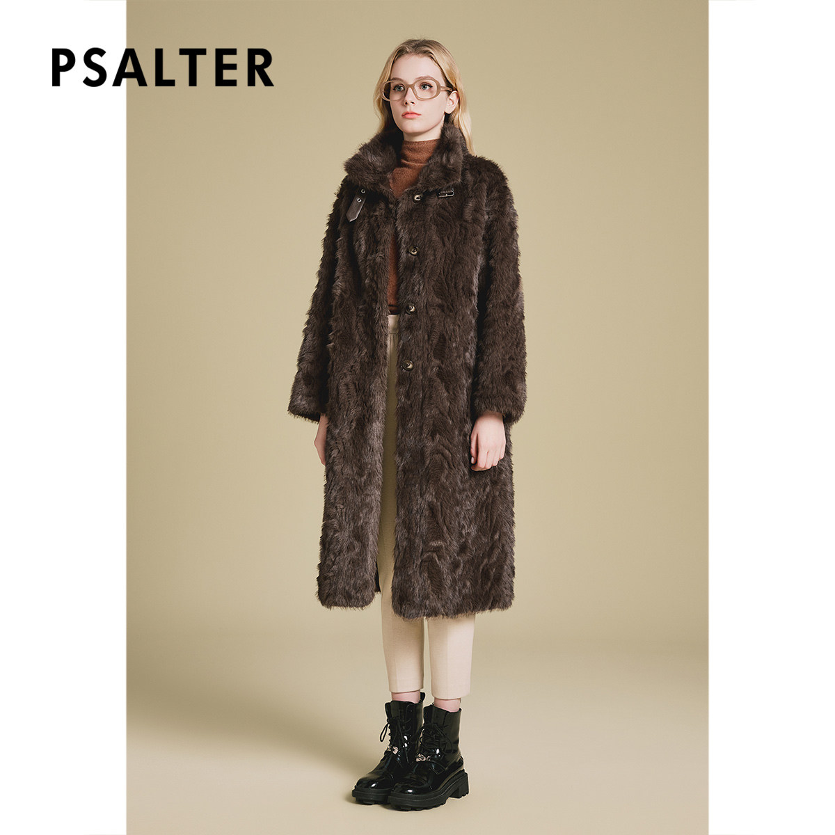 PSALTER诗篇美拉德时尚宽松皮袢立领长款环保皮草外套冬款