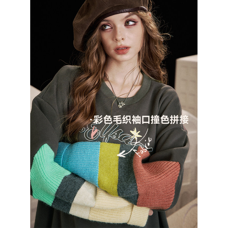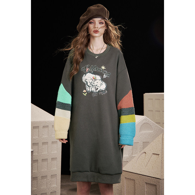 妖精的口袋多巴胺针织拼接印花卫衣连衣裙女2025年冬新款新年穿搭