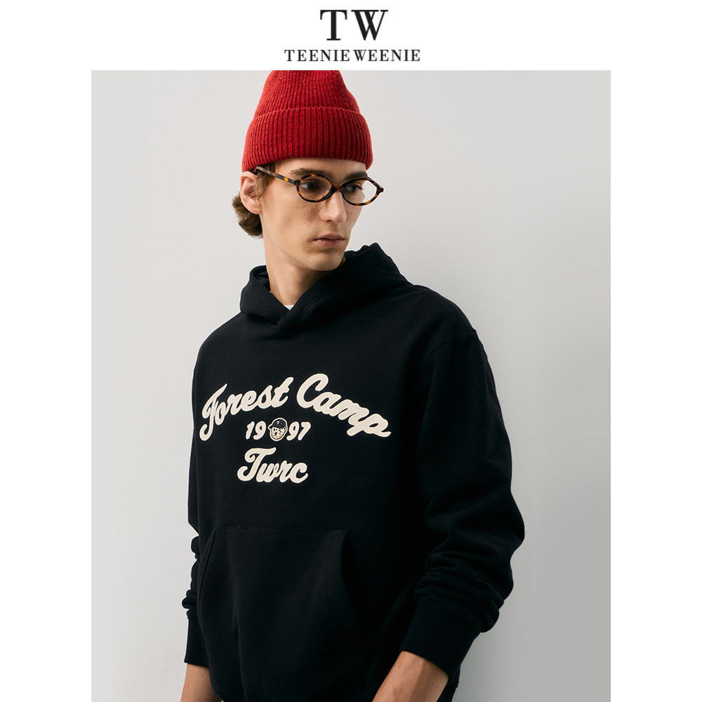 TeenieWeenie小熊男装简约时尚连帽卫衣春季黑色宽松美式运动上衣