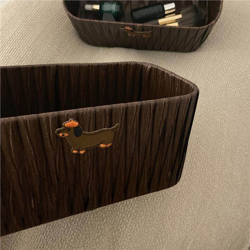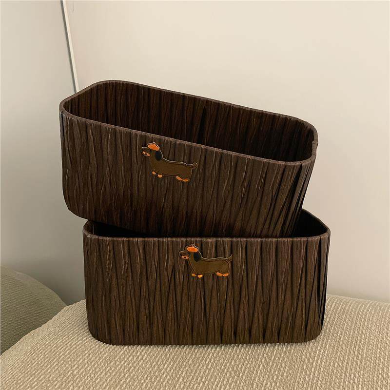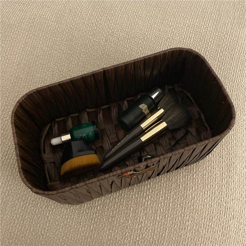 藤编超好收纳~ins质感好复古桌面收纳盒家用宿舍化妆品杂物整理筐