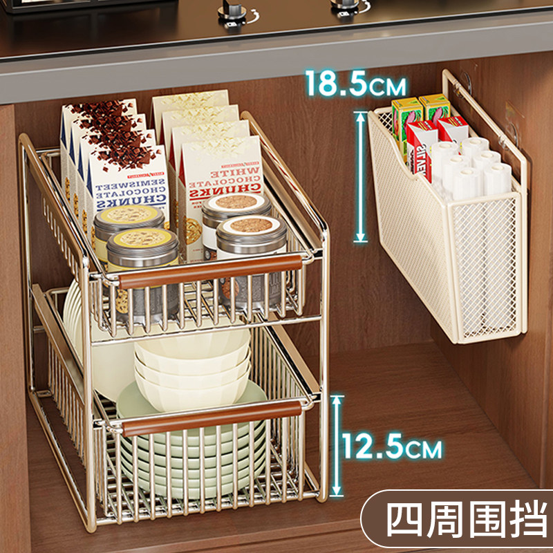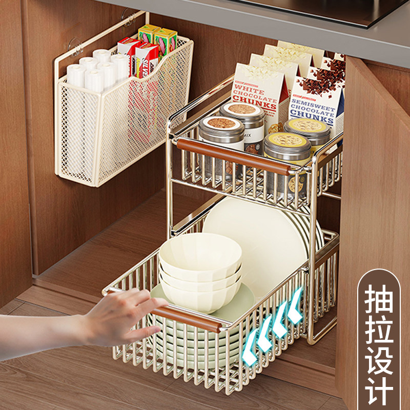 厨房下水槽置物架抽拉式橱柜拉篮碗碟调料整理架柜内多功能储物架