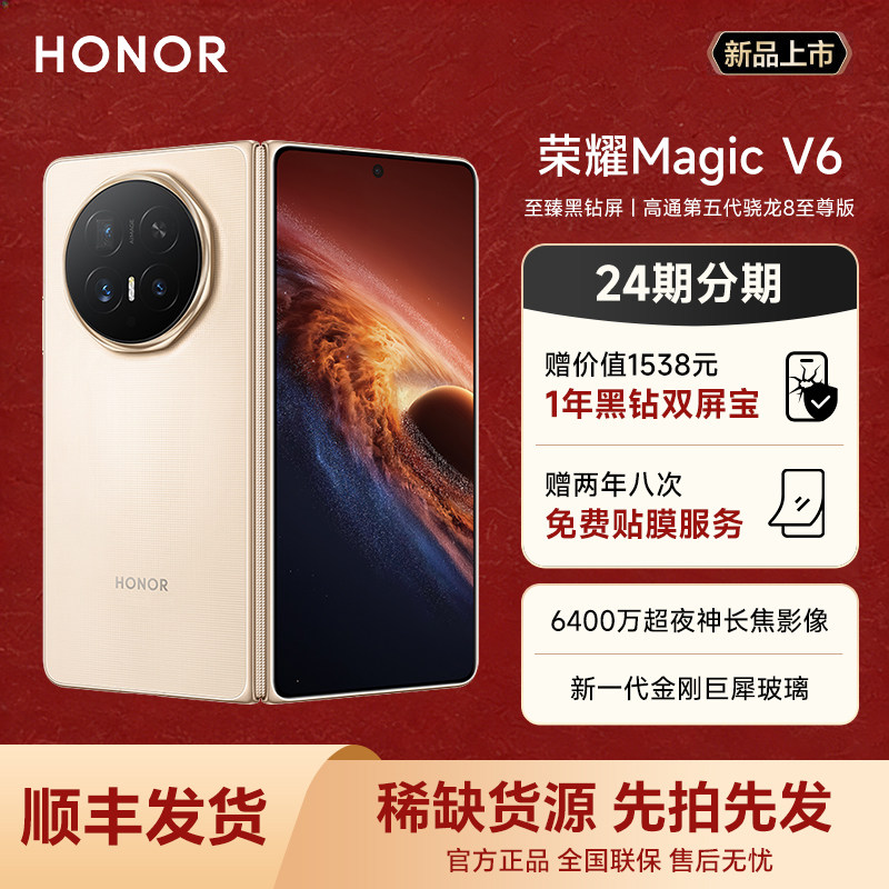 【24期分期 赠黑钻双屏宝】HONOR/荣耀Magic V6 折叠屏手机高通第五代骁龙8至尊芯片轻薄续航正品官方旗舰店