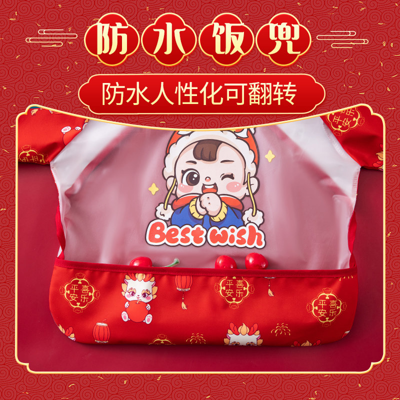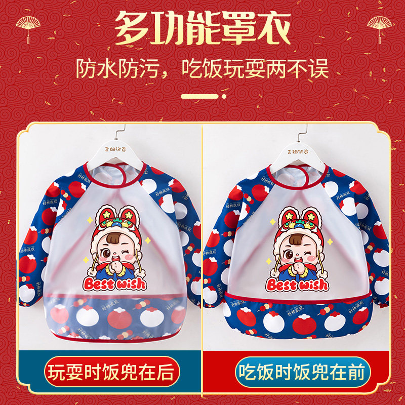 过年儿童罩衣防水防脏外穿男女宝中国风新春洋气拜年服饭兜红色