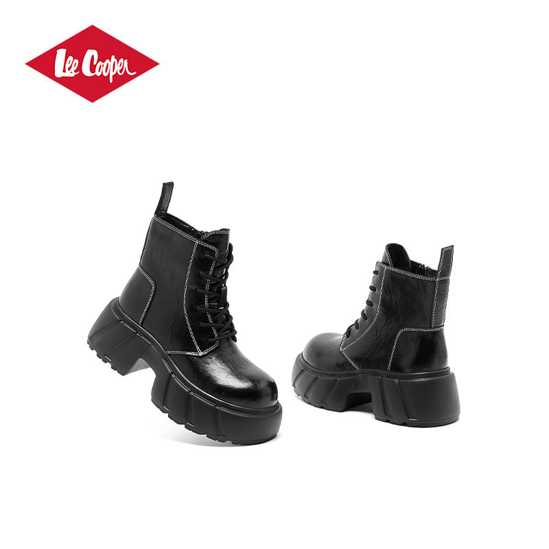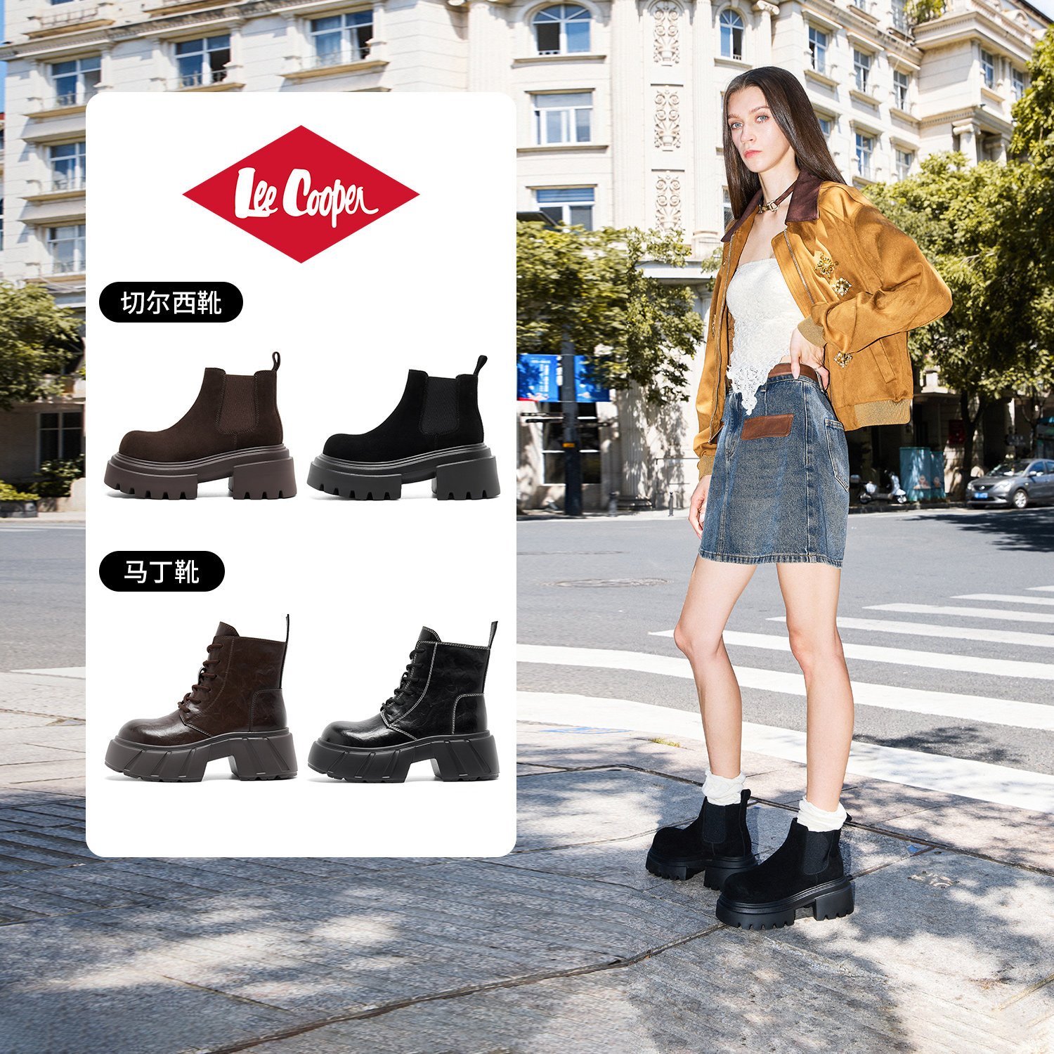 Lee Cooper厚底马丁靴女2025新款秋冬季机车靴女短靴黑色切尔西靴
