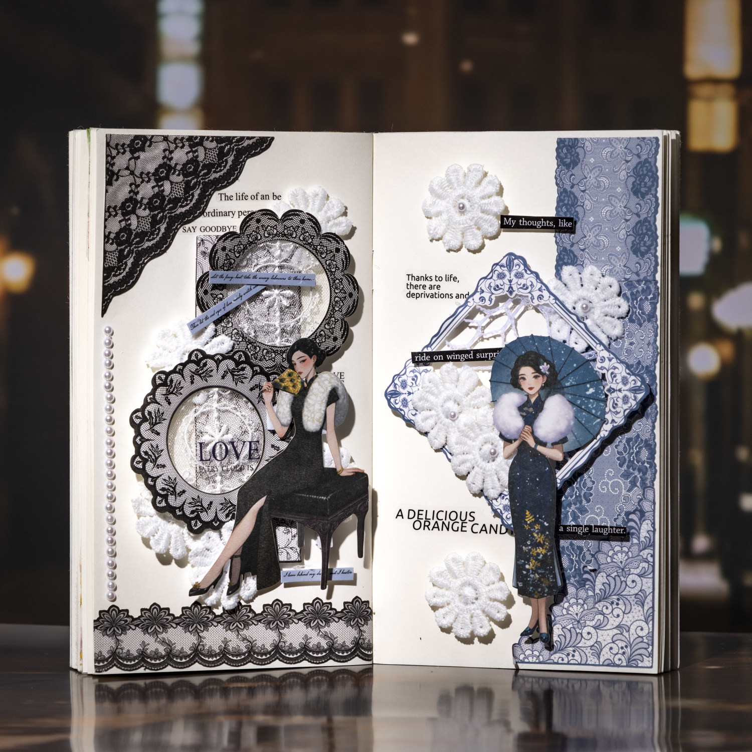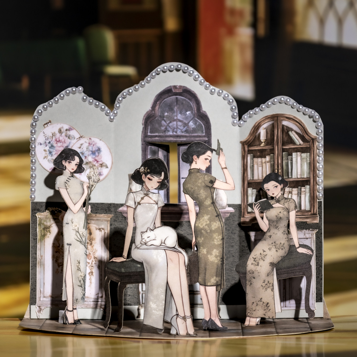 旗韵贴纸包复古中国风旗袍人物白牛皮纸手帐卡片拼贴装饰素材贴画
