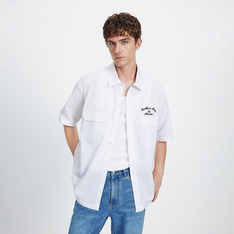 Navigare意大利小帆船白色短袖衬衫男2026夏季宽松翻领开衫外套