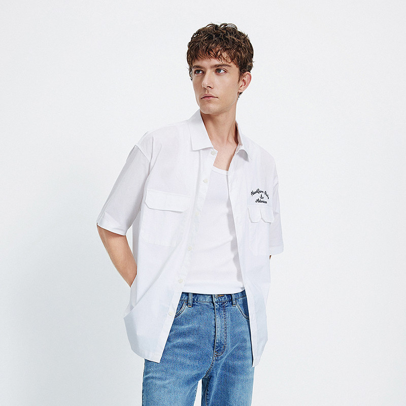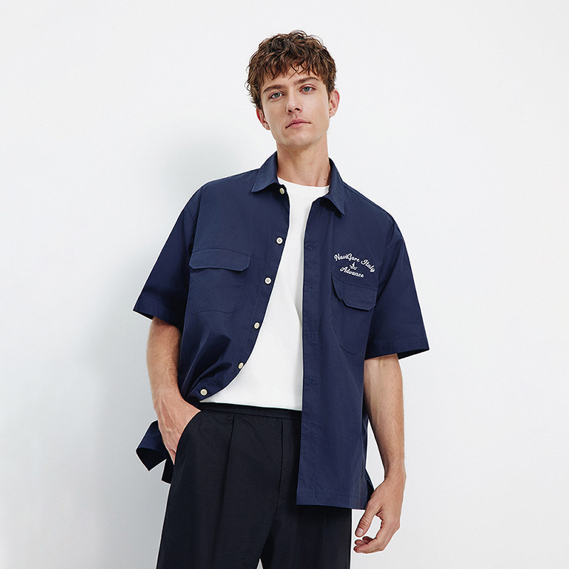 森马长袖衬衫男宽松工装外套情侣款纯色百搭上衣纯棉秋装潮酷流行