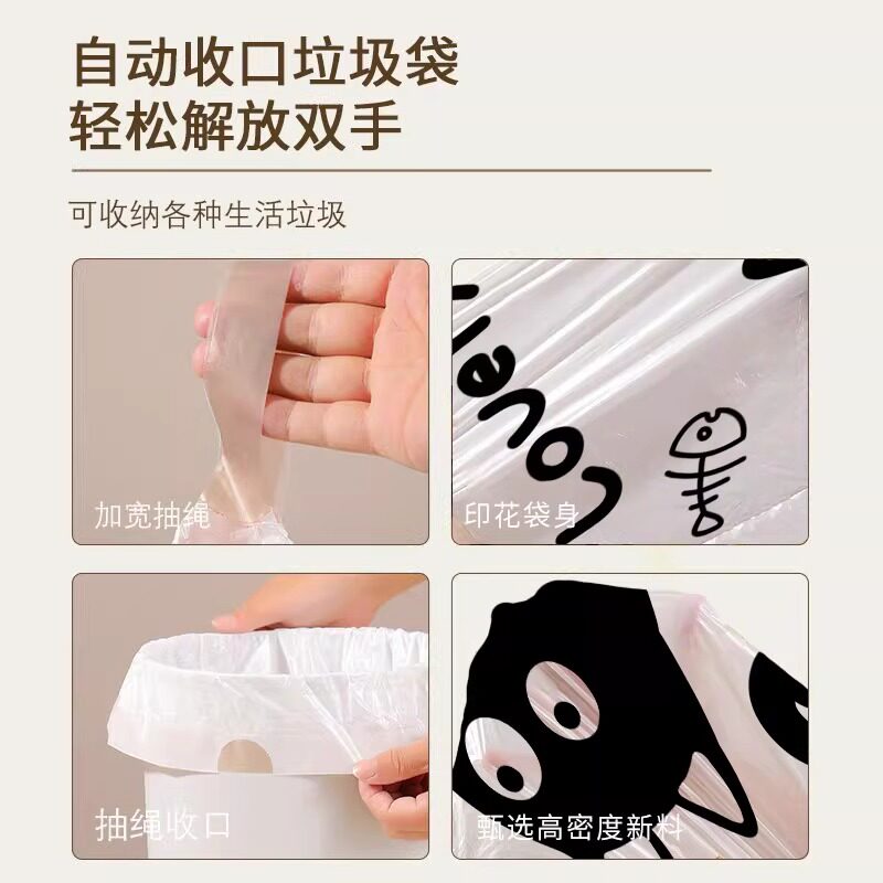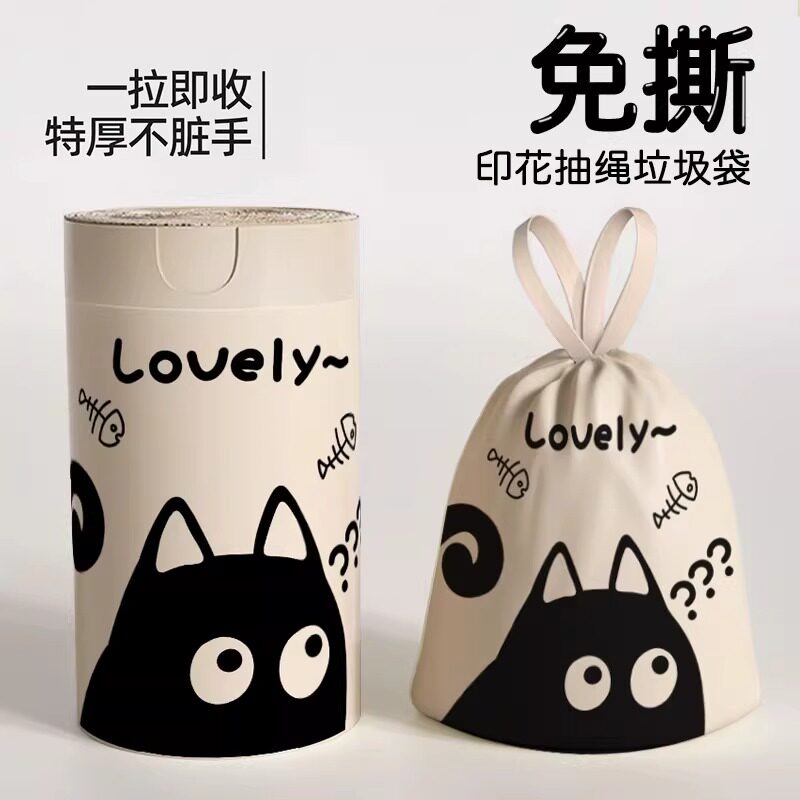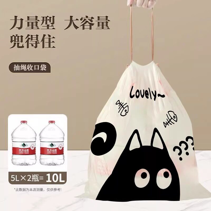 家用加厚卡通抽绳式垃圾袋加厚手提厨房宿舍学生大号黑色塑料袋
