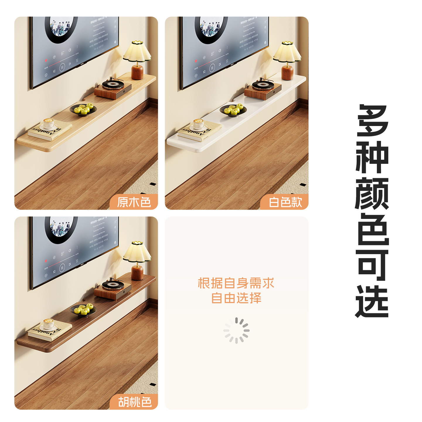 电视柜电视机柜一字木板装饰机顶盒收纳板搁板墙上置物架折叠白色