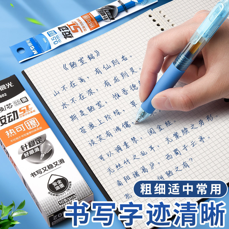 晨光可擦笔替换芯热可擦笔芯中性笔三年级小学生专用黑色st笔头按动替芯晶蓝笔芯三年级0.5mm摩易磨擦水笔