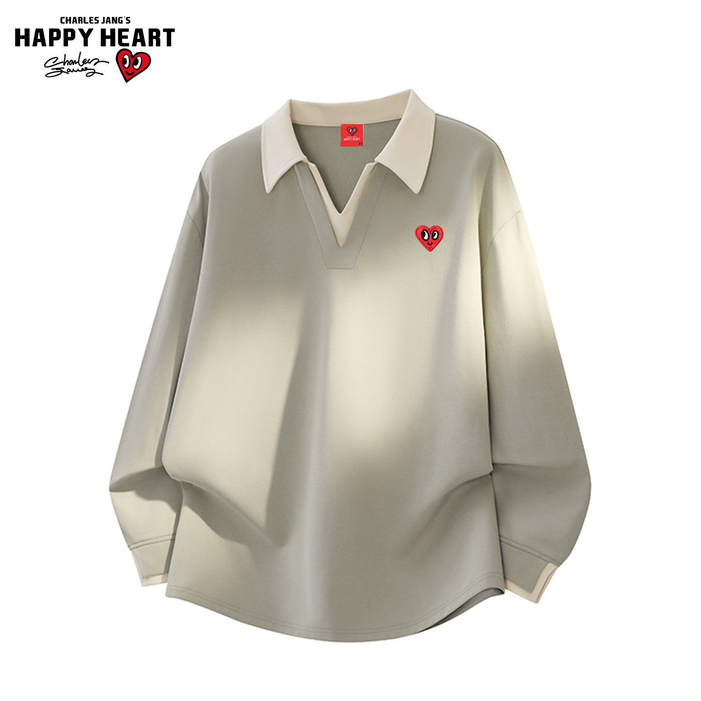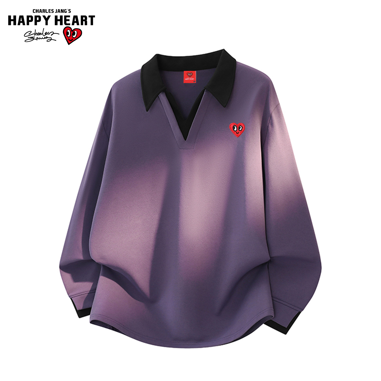 查尔斯桃心 美式翻领假两件长袖卫衣男女秋冬季加绒加厚休闲上衣