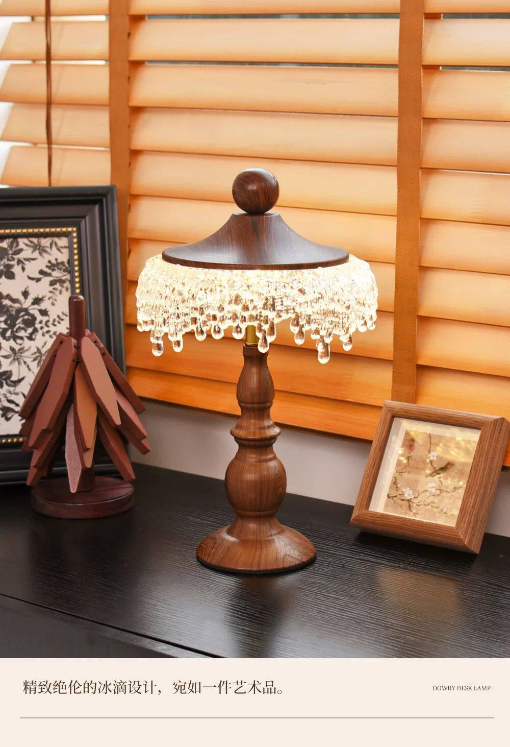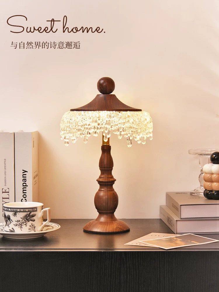 法式复古中古台灯陶瓷新中式木纹侘寂风设计师卧室高级感床头柜灯