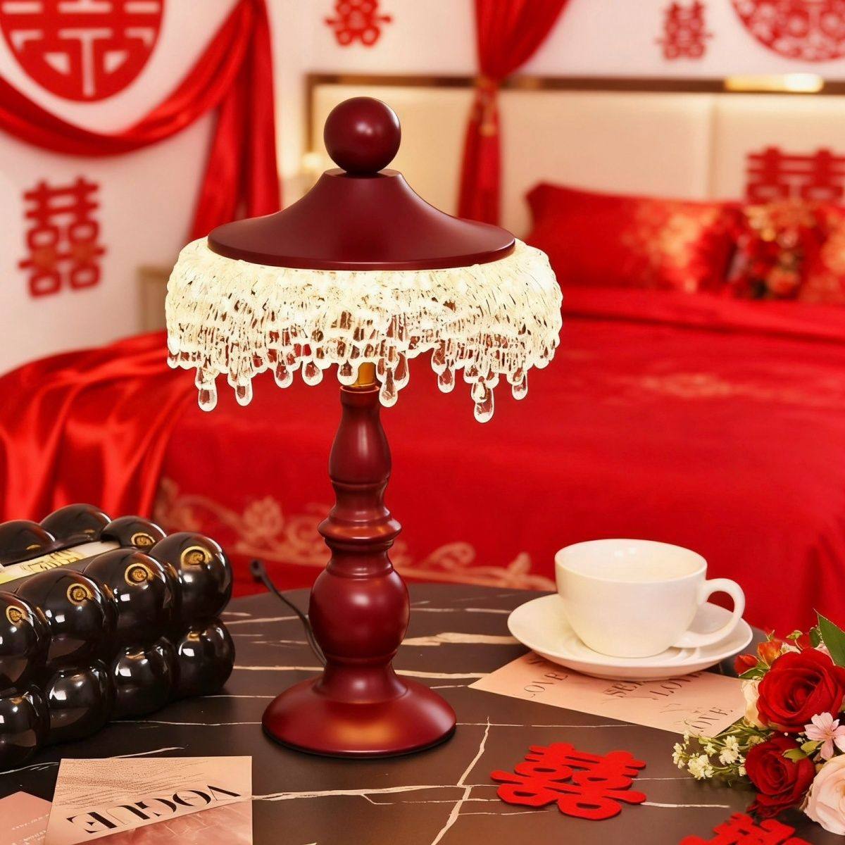 结婚台灯婚房陪嫁轻奢水晶酒红色长明灯一对床头灯卧室送新婚礼物