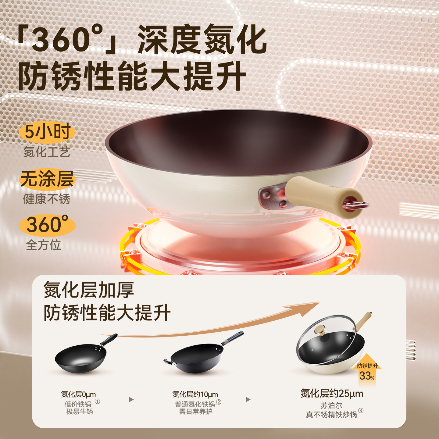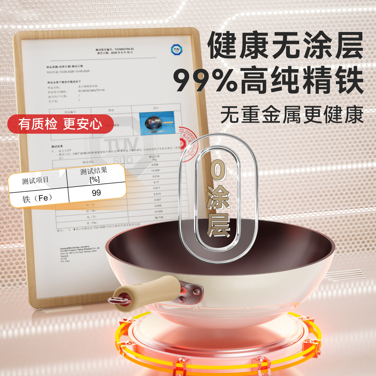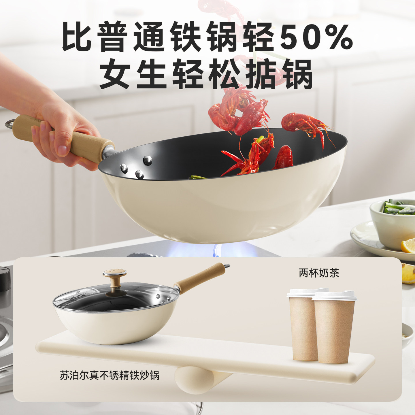 苏泊尔铁锅家用炒菜锅无涂层炒锅免开锅精铁熟铁锅燃气电磁炉通用