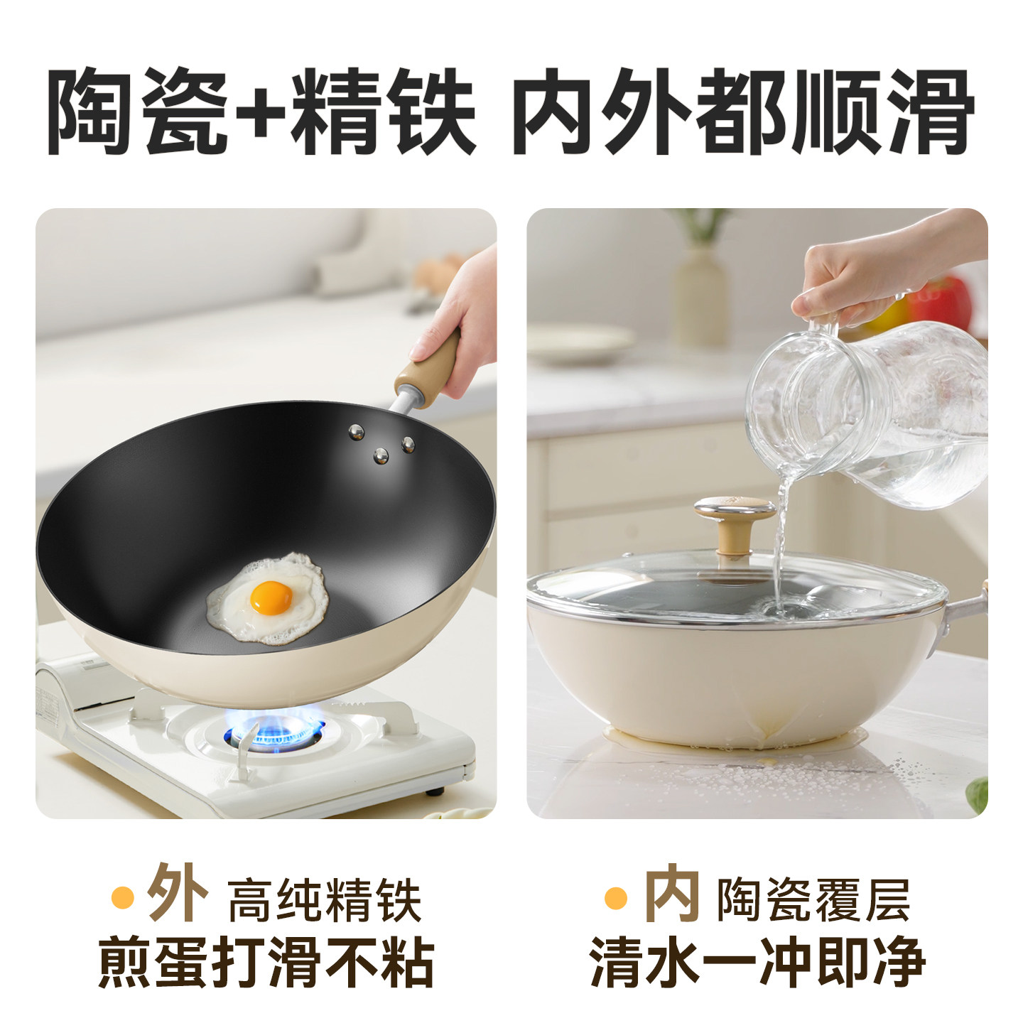 九阳铁锅无涂层炒锅家用炒菜锅不易粘锅电磁炉专用燃气灶旗舰店炊