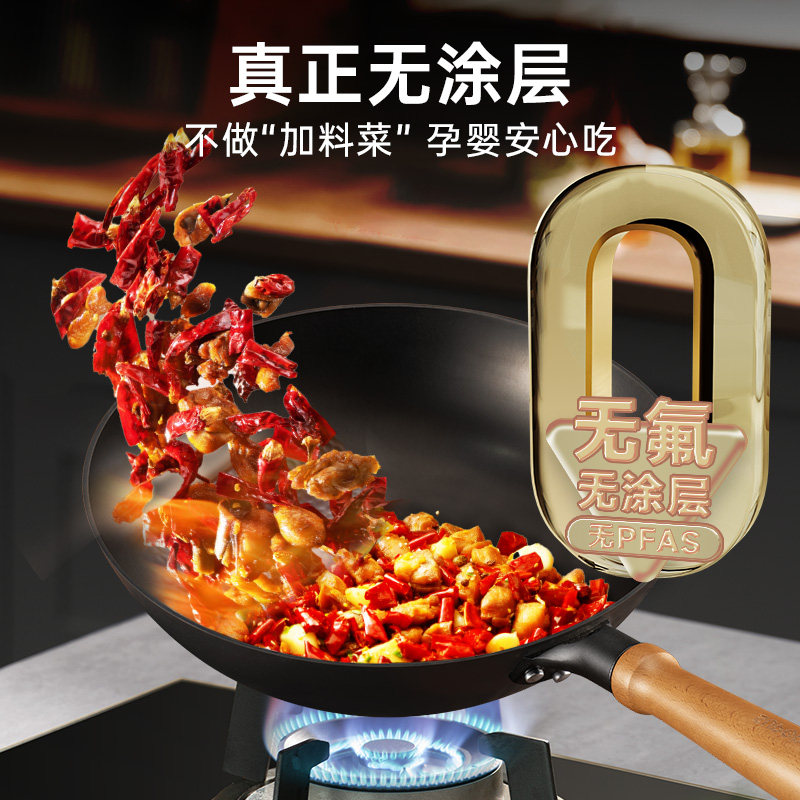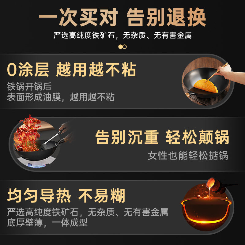 铁锅官方旗舰炒菜锅老式炒锅铁锅家用不粘锅无涂层燃气灶适用