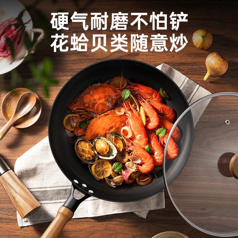 九阳铁锅无涂层炒锅家用炒菜锅不易粘锅电磁炉专用燃气灶旗舰店炊