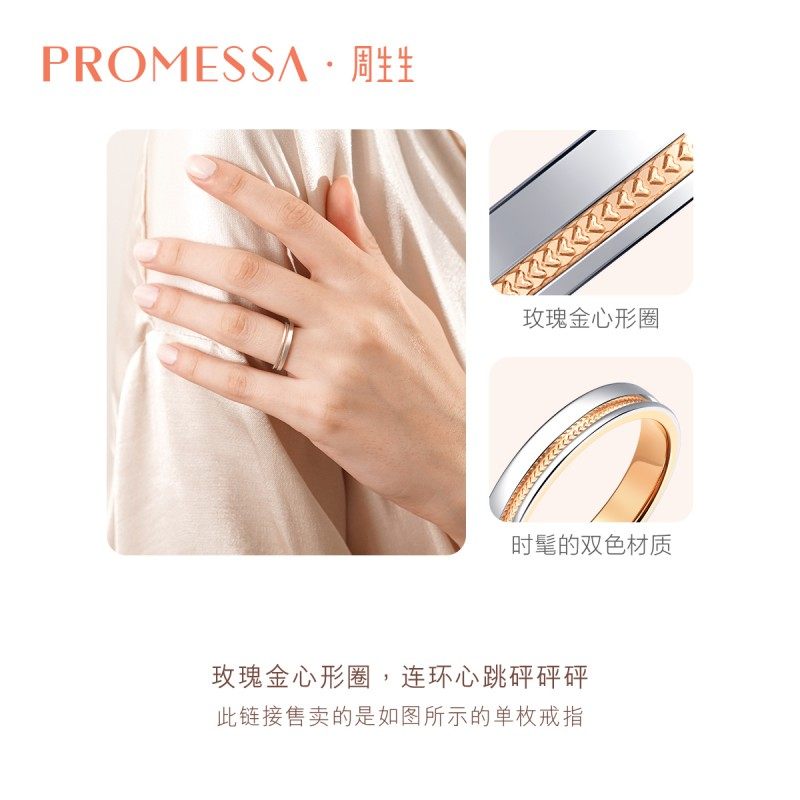 周生生PROMESSA小皇冠18K金Pt950铂金戒指对戒情侣75238R