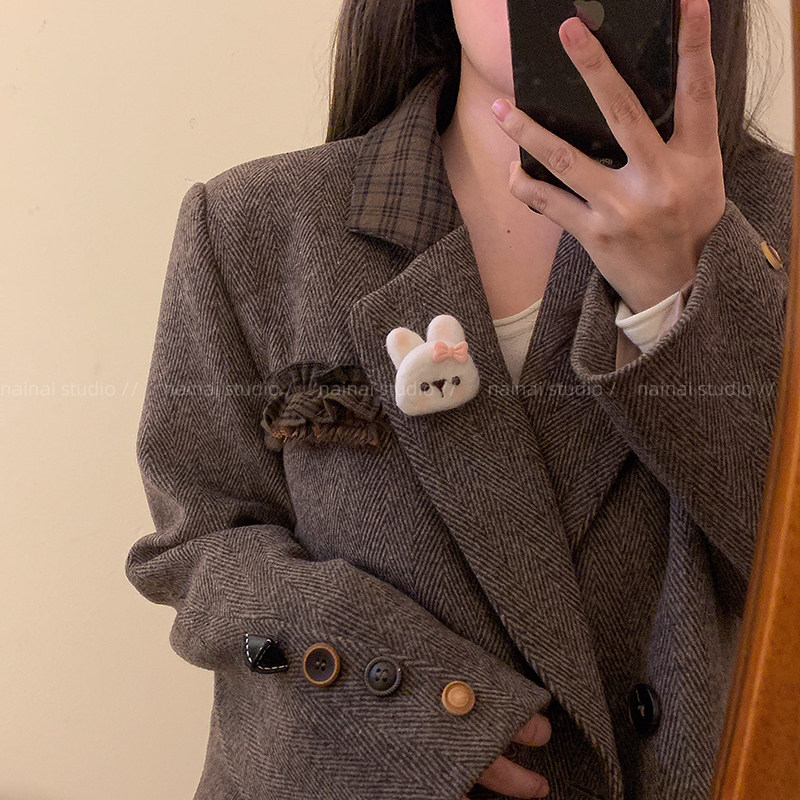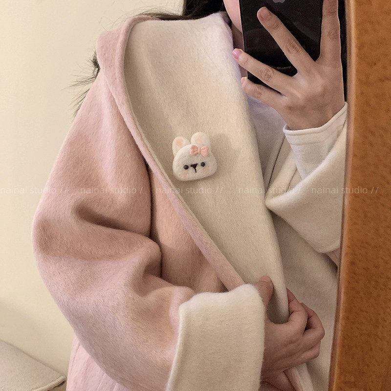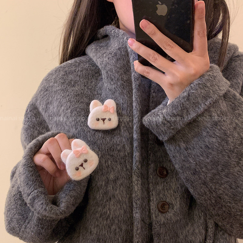 小兔子胸针~羊毛毡粉色蝴蝶结别针2025新款可爱甜美包包胸花配饰