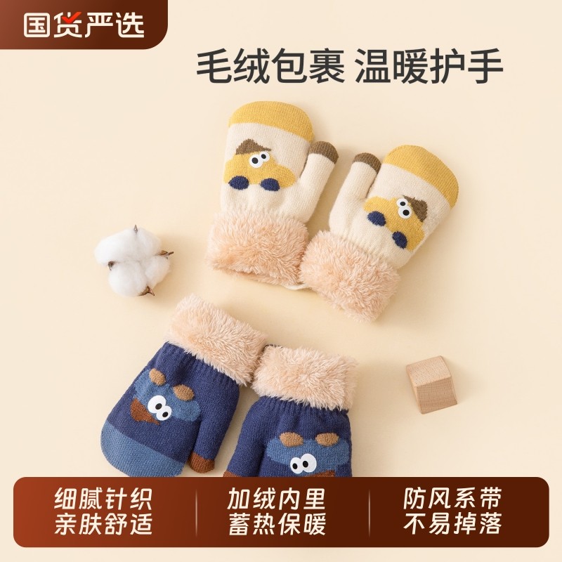 儿童手套秋冬天半指保暖宝宝女童可爱婴幼儿加厚小孩0-2岁小蘑菇