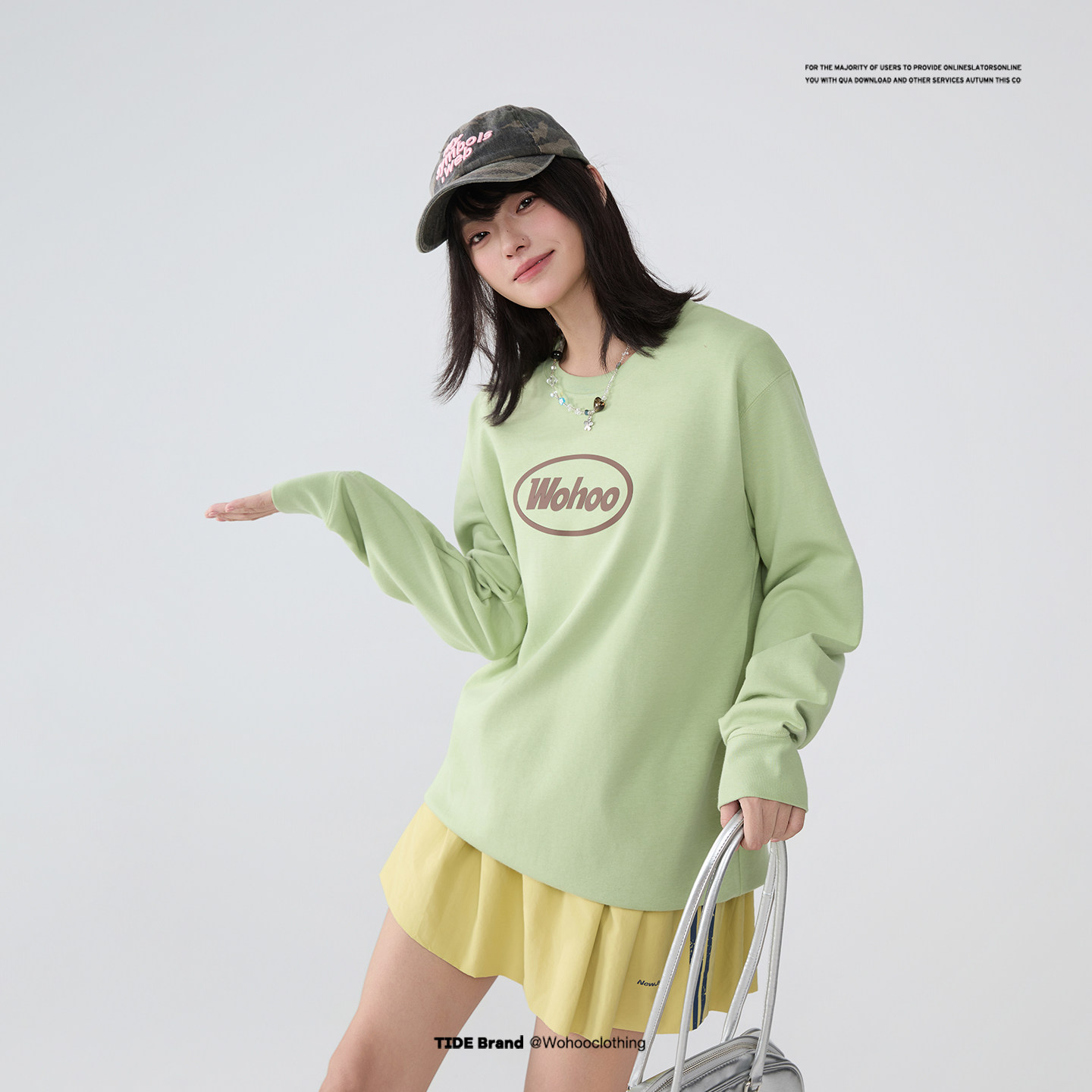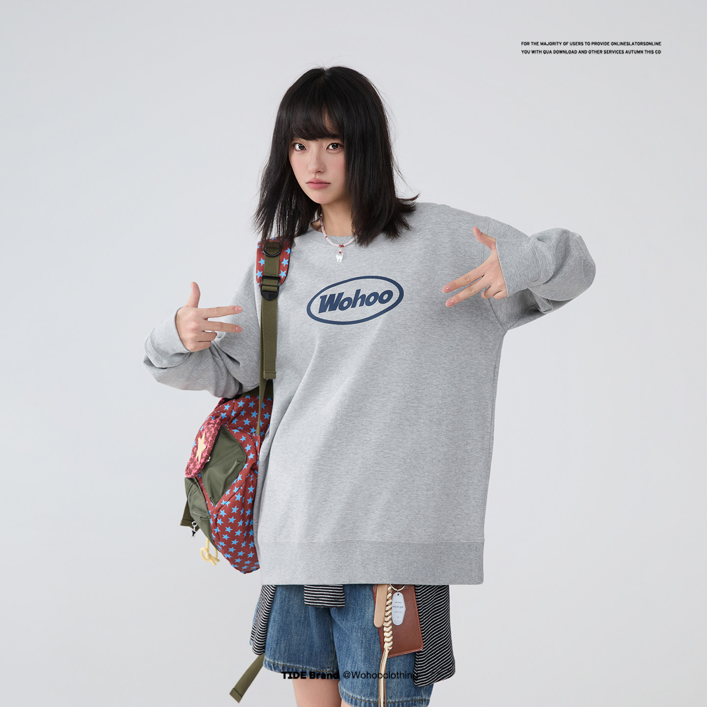 【晁然专属】WOHOO圆领卫衣女情侣装秋季潮牌百搭套头宽松潮上衣