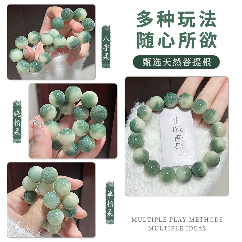 白玉菩提根雕刻六字箴言学生盘玩手串女绕指柔菩提子文玩佛珠手链