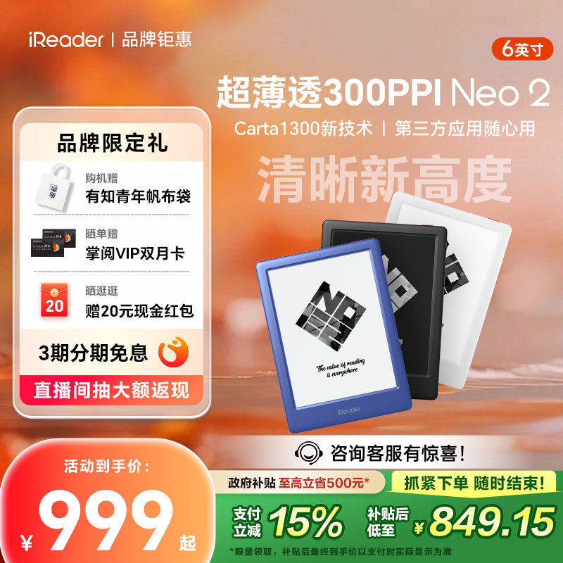 【支持多地国补】掌阅iReader Neo2电子书墨水屏阅读器6英寸智能电纸书阅览器水墨屏学生护眼小说漫画电子纸