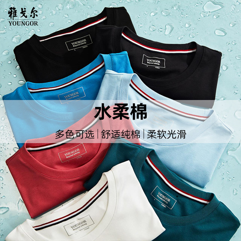 雅戈尔夏季男士短袖T恤休闲宽松圆领水柔棉打底新疆棉T恤9614