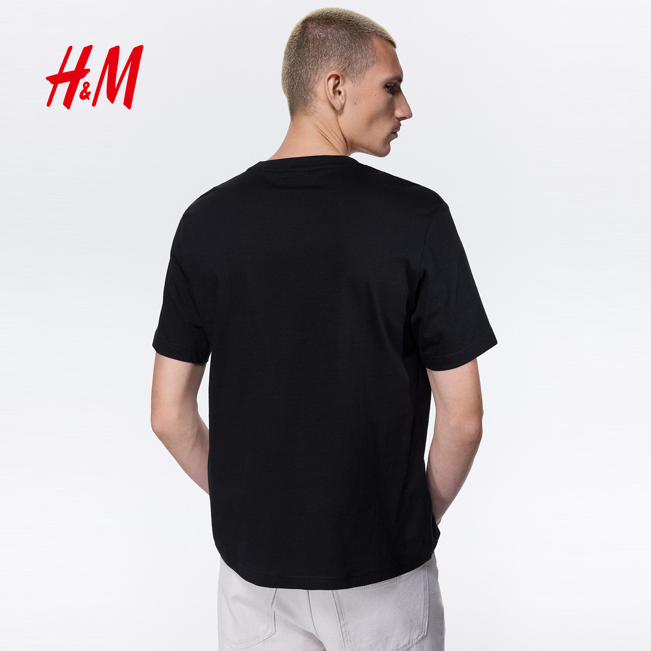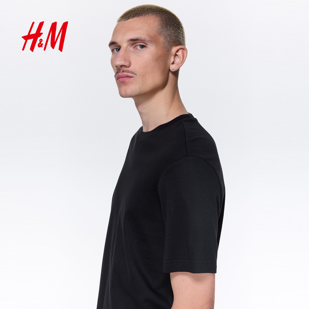HM男装T恤冬季休闲简约圆领短袖舒适纯棉内搭打底衫上衣0685816