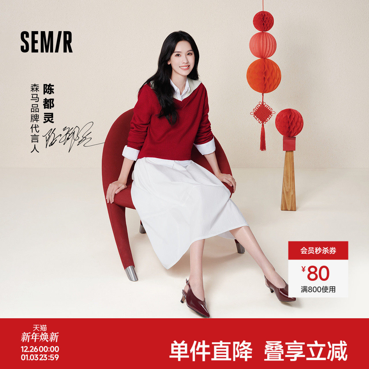 商场同款|森马半身裙女春季纯色肌理松紧腰垂感长裙2026新款伞裙