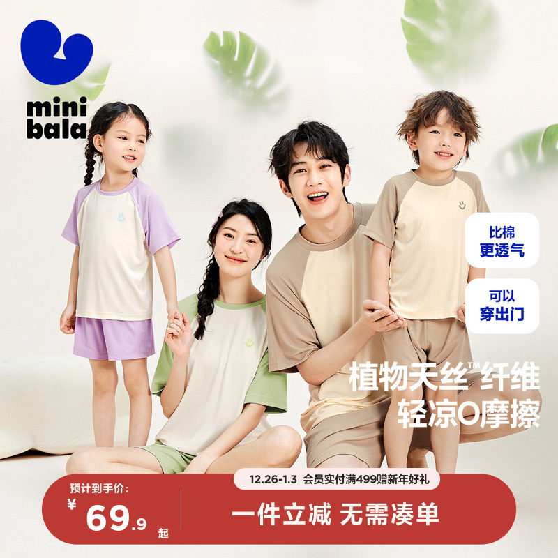 【植物芯天丝】迷你巴拉巴拉夏季新款男女童睡衣亲子家居服套装