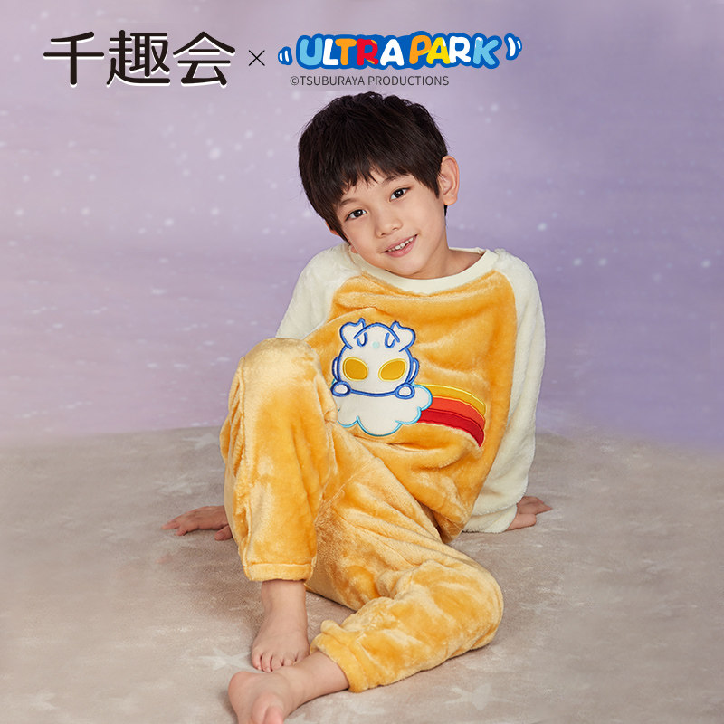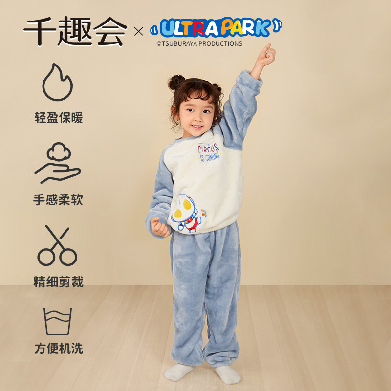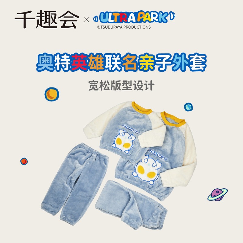 千趣会童装奥特曼联名冬季家居服亲子装男女童保暖睡衣套装